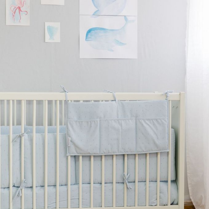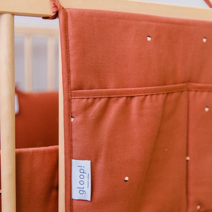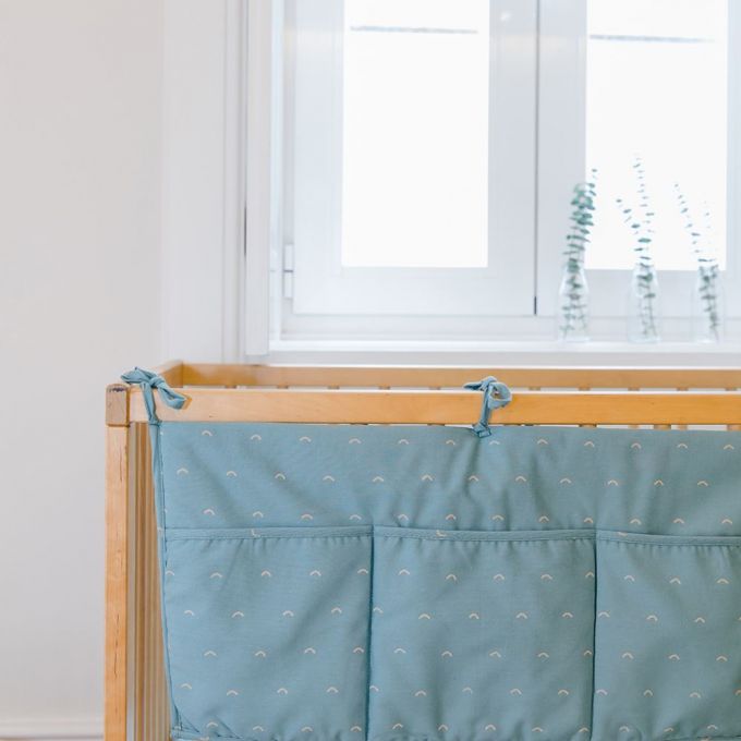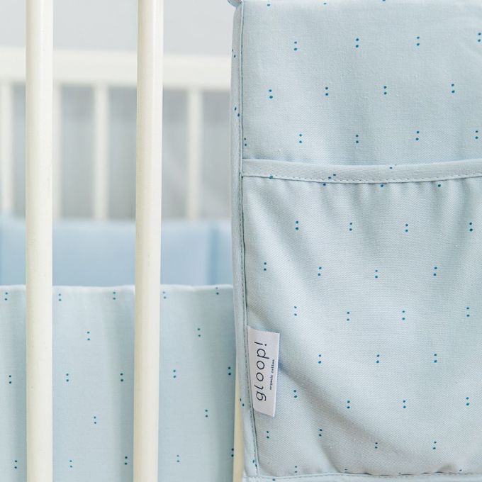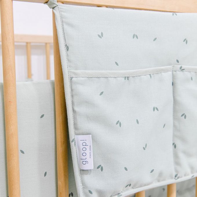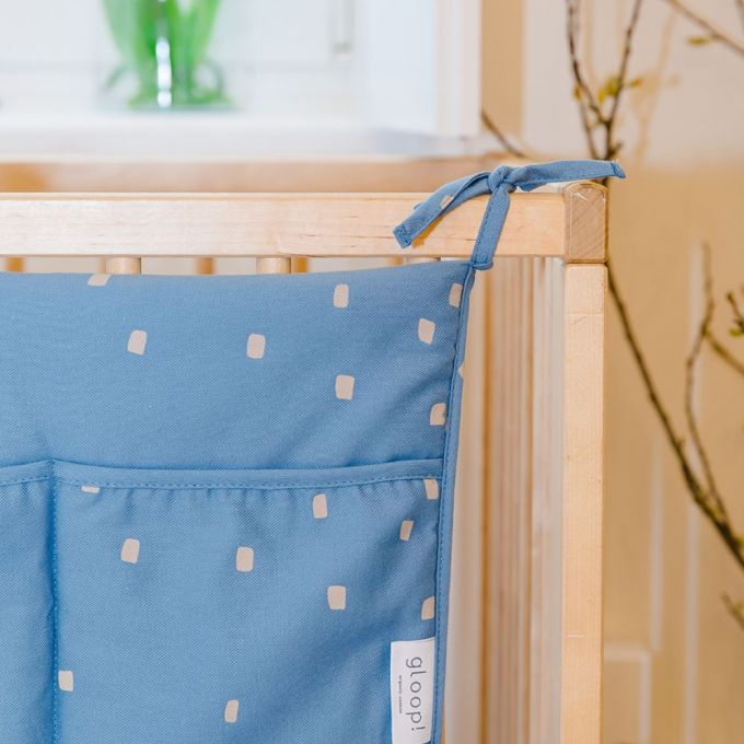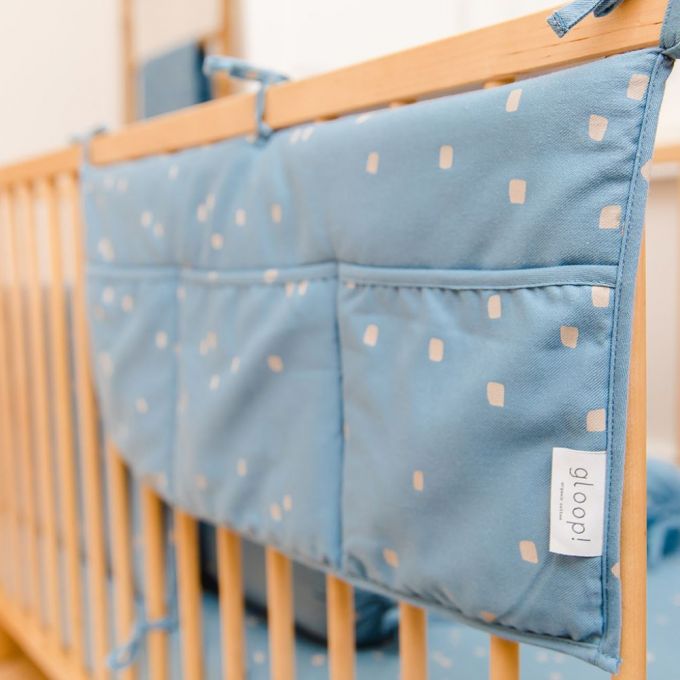 El organizador de cuna gloop! es una parte esencial de la vida cotidiana. Viene con 3 bolsillos para tener a mano los pañuelos, pañales o chupetes de su bebé.