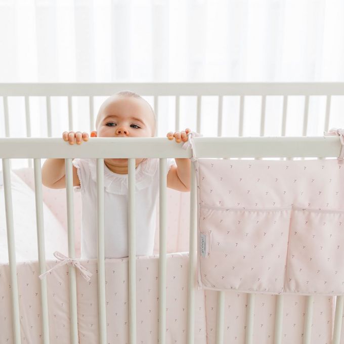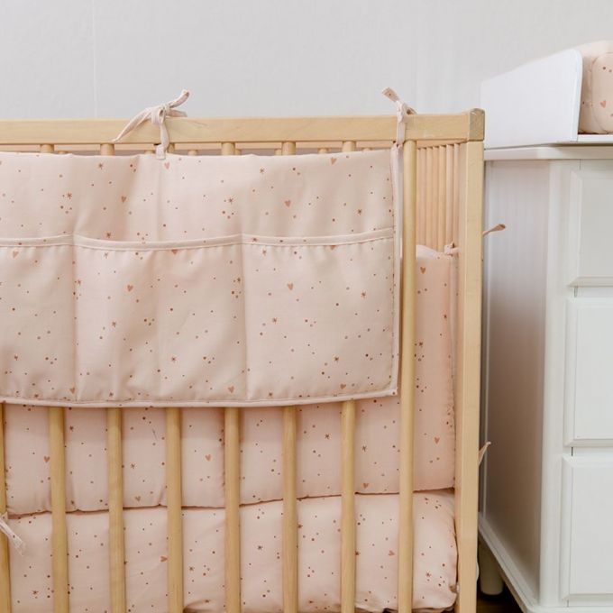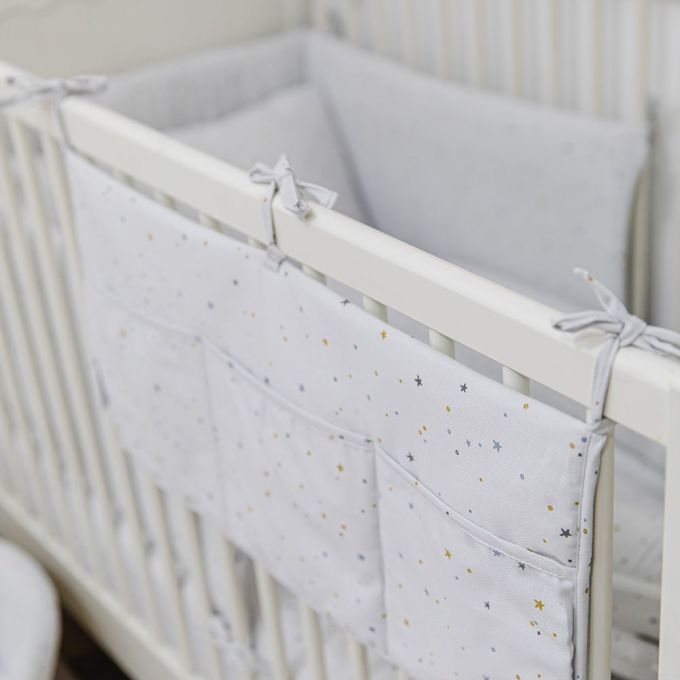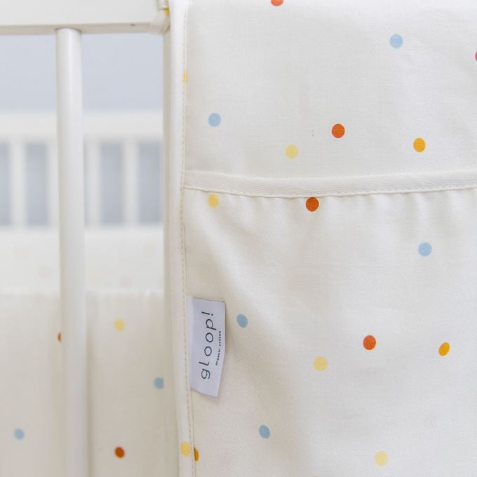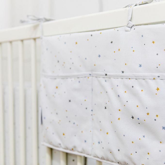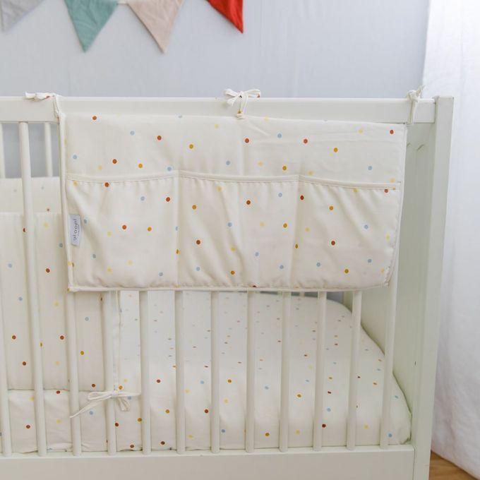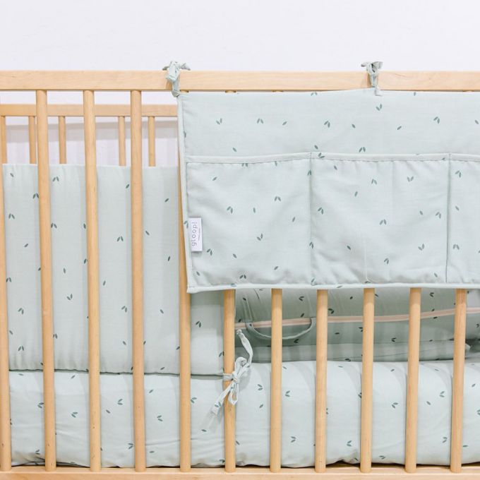 El organizador de cuna gloop! es una parte esencial de la vida cotidiana. Viene con 3 bolsillos para tener a mano los pañuelos, pañales o chupetes de su bebé.