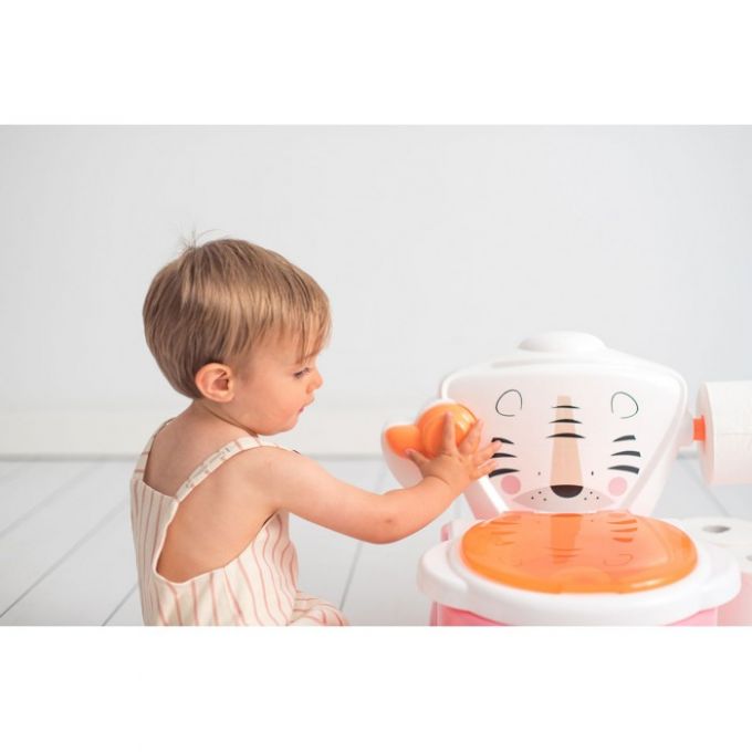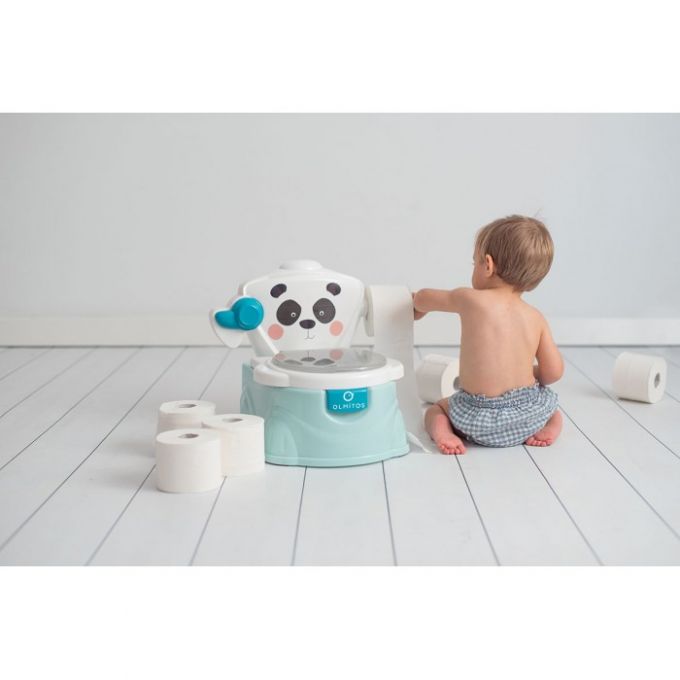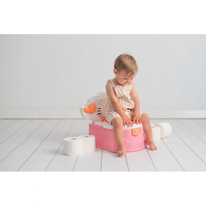 Orinal de de diseño muy divertido y funcional que facilita el aprendizaje del bebé. El vaso es extraíble para facilitar su limpieza e incluye un portarollos para el papel. Además se puede utilizar como reductor para un WC normal.