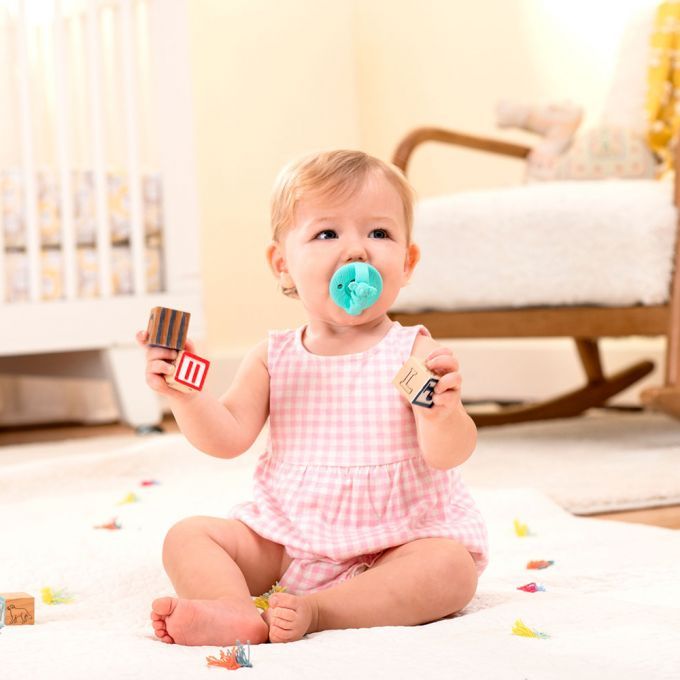 Hecho de silicona 100% de grado alimenticio, este chupete de una pieza está especialmente diseñado para calmar de manera segura a tu peque.