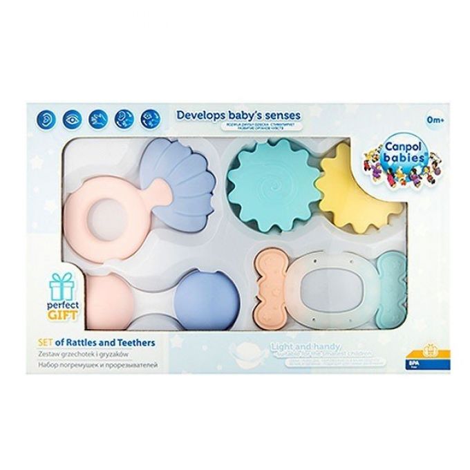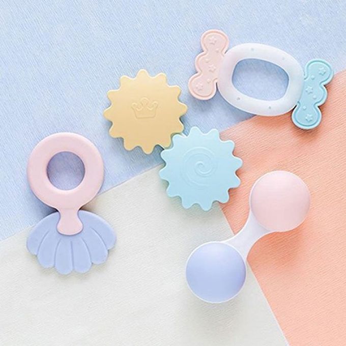 Los juguetes están equipados con mordedores flexibles, que brindan alivio durante la dentición, también tienen elementos giratorios y sonajeros llamativos y que fomentan el juego.