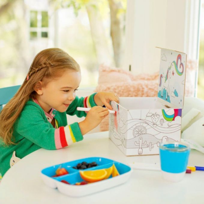 Diseñado especialmente para las bocas y manitas pequeñas, el set mejora la auto-alimentación con unos mangos cómodos y de fácil agarre en el tenedor, la cuchara y el cuchillo apto para niños; fondos adherentes y paredes profundas en los platos y el cuenco, y un montón de colores vivos y divertidos entre los que elegir. Libres de BPA y aptos para el lavavajillas, ¡este set será lo más! A los bebés les encanta comer como los mayores, y debido a su variedad de colores, son perfectos para asignarlos por colores en casas con varios niños. La divertida caja sirve también como superficie para colorear.
