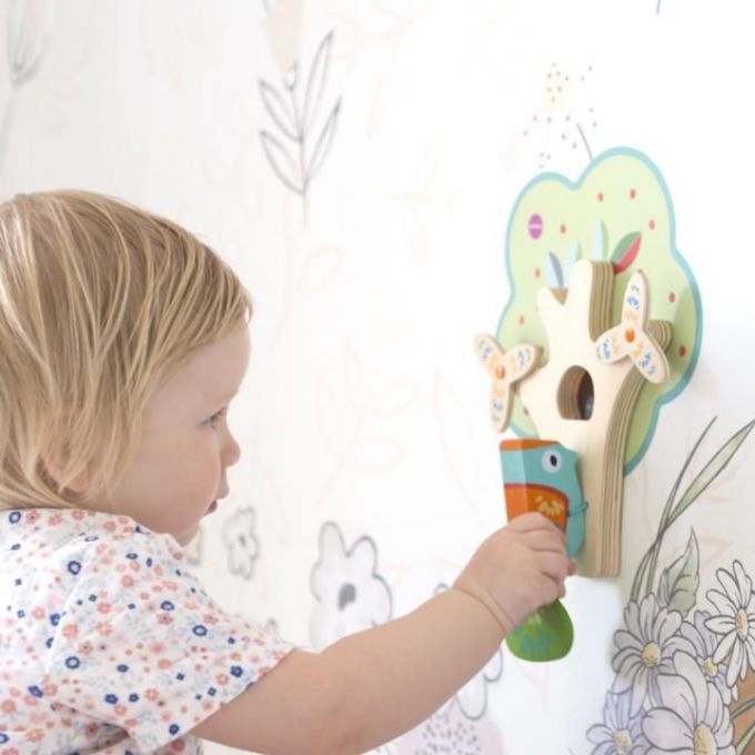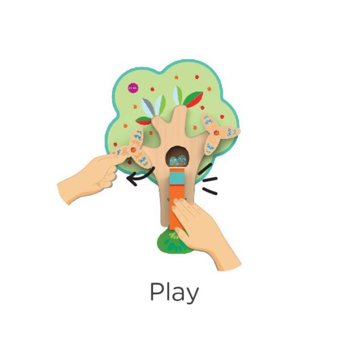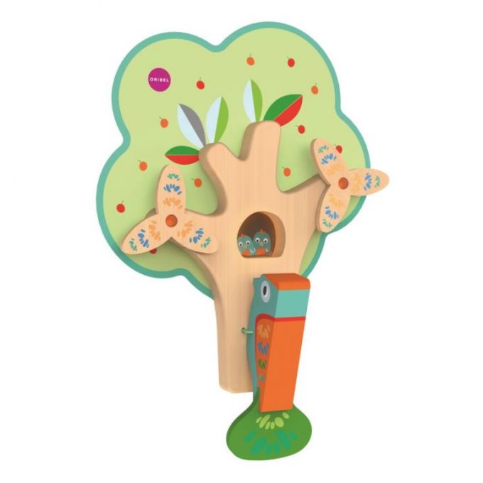 Juguete madera pájaro carpintero que nos presenta gira los molinos y pica el árbol con el pájaro carpintero.