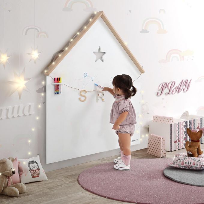 Este panel multifuncional es el complemento perfecto para la habitación de tu hijo o su cuarto de juegos. Se puede utilizar como panel protector para la pared de tu casa o cabecero de cama de 90 cm. Su material de fácil limpieza y sus rotuladores de tinta líquida hace que tenga diversos usos: desde pizarra de juegos hasta panel para que los papás podáis interactuar con vuestros hijos.