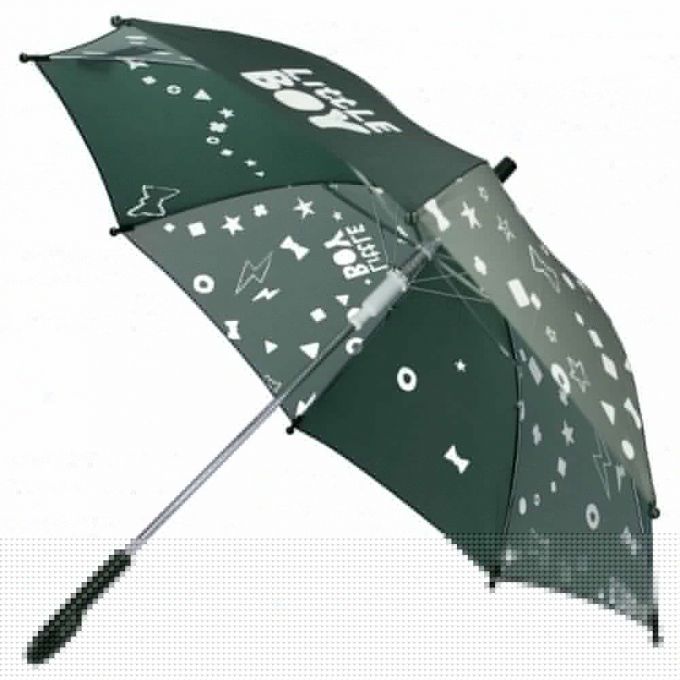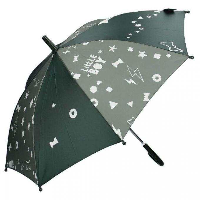 Paraguas infantil automático con 8 varillas de metal para refugiarse de la lluvia e ir a la última moda. De color verde y un divertido estampado con letras y símbolos.