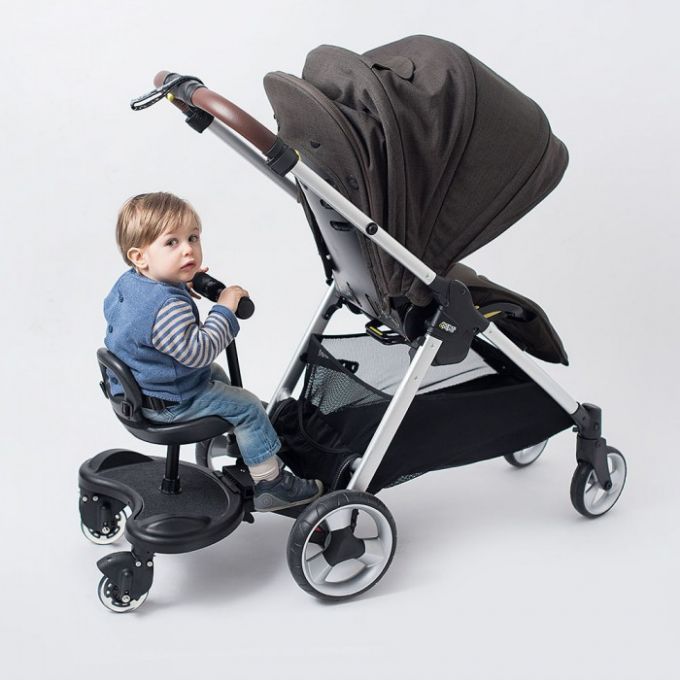Transporta a tu hijo de la manera más cómoda. Bien de pie o sentado, será todo un reto para él acompañar el cochecito de su hermano/a.