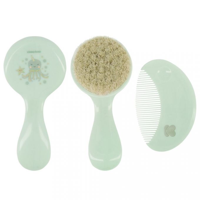 Cepillo para bebés con cerdas naturales suaves.
