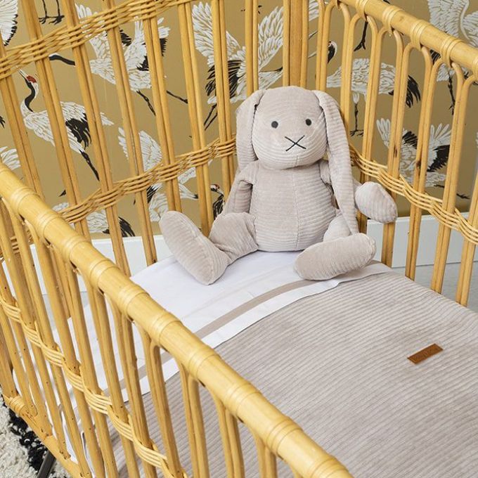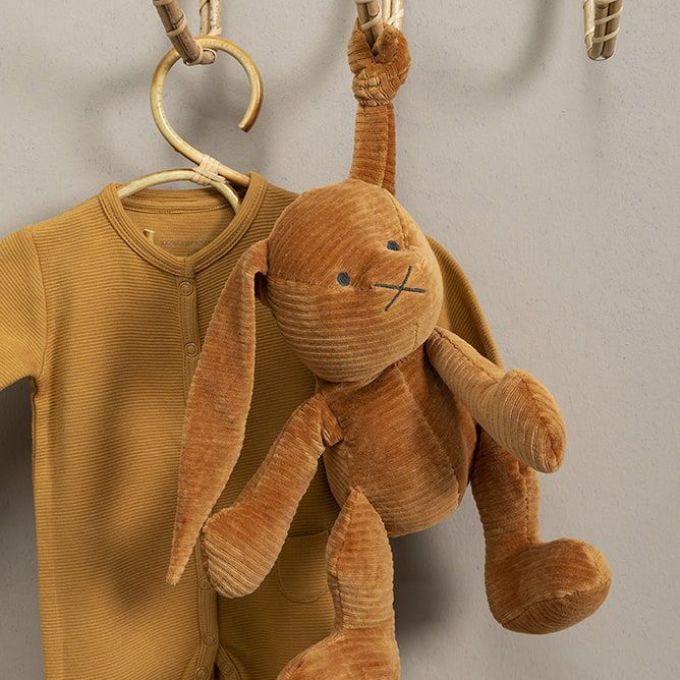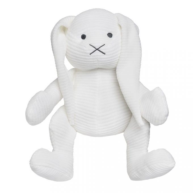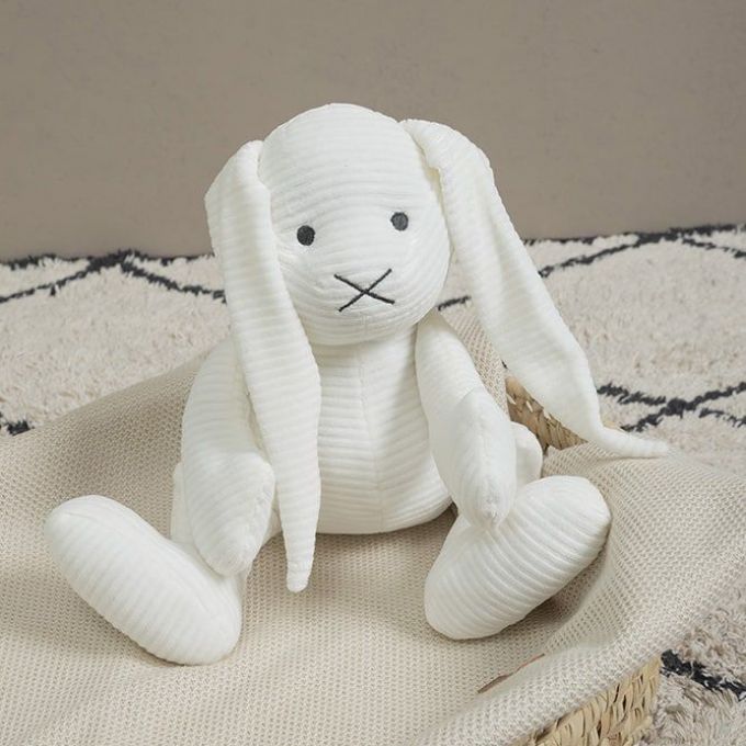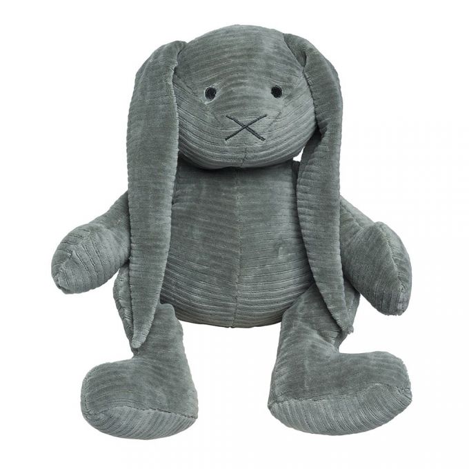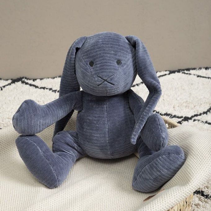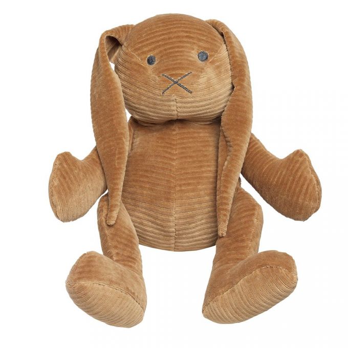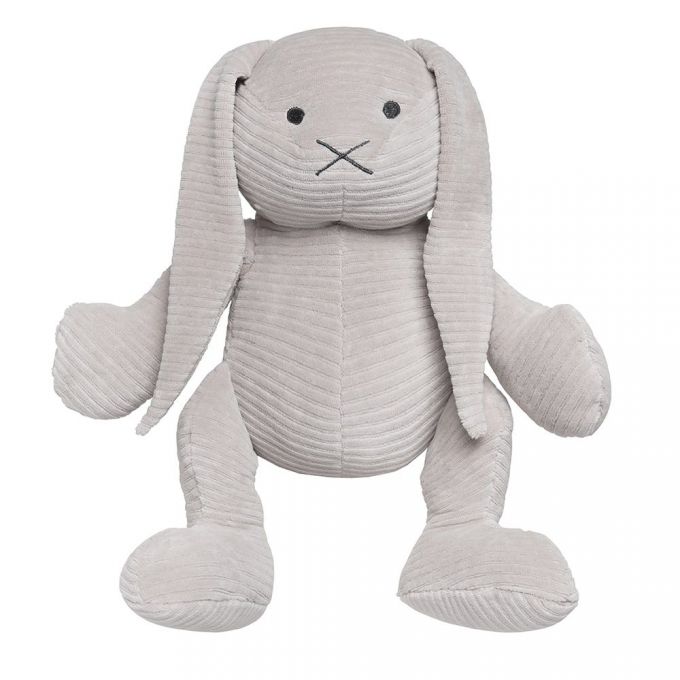 El muñeco de peluche con forma de conejo está hecho de elegante pana de canalé y tiene unas bonitas orejas largas.