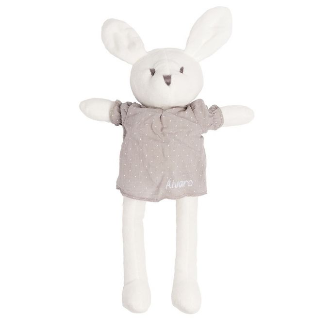 Este peluche es la compañía perfecta para el más pequeño de la casa, es un simpático conejo vestido con una camisa y con un sonajero en su interior.
