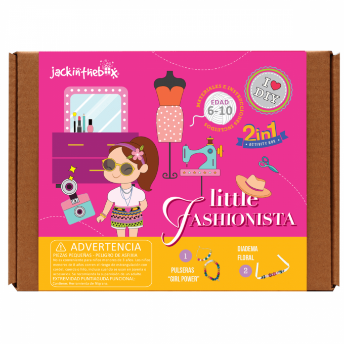 Caja de manualidades con instrucciones en castellano y todos los materiales necesarios para realizar hasta 2 actividades con la temática de la moda. Ideal para desarrollar la motricidad fina, la concentración, la expresividad artística, el aprendizaje y el lenguaje.