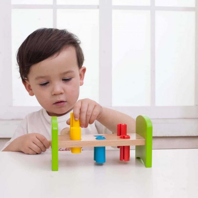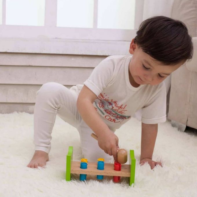 Este picafuerte pequeño de madera colorido con 6 clavijas ayudará a desarrollar la coordinación mano-ojo y la fuerza de los brazos de tu hij@. Se balancea de un lado a otro cuando lo pones boca abajo, lo que hace que el juego sea más desafiante y divertido.