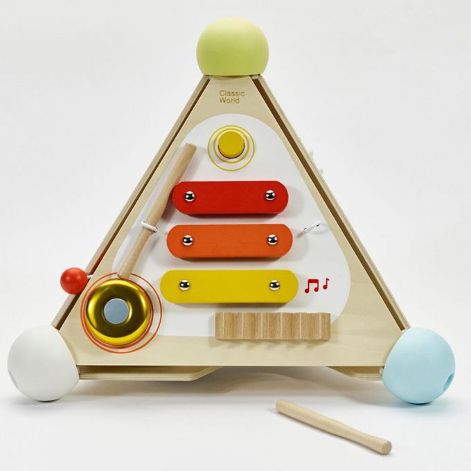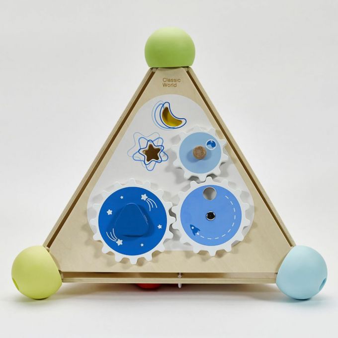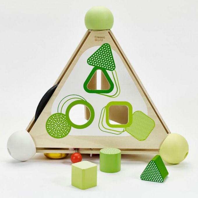 La pirámide de actividades es una caja de actividades piramidal que tiene distintas funciones en los distintos lados como son: bloques de clasificación de formas, 1 espejo para el autodescubrimiento, ruedas para la motricidad fina, música y campanas para crear melodías. Todas las funciones están diseñadas para potenciar que l@s niñ@s desarrollen sus habilidades. Las tonalidades y los iconos simples les ayudan a concentrarse más en el juego.