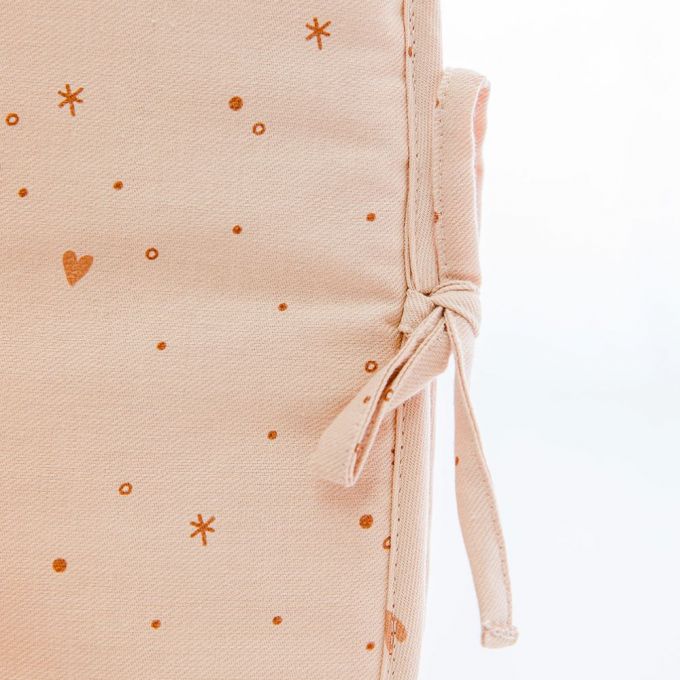 El exterior está hecho de nuestro tejido de algodón orgánico 100% certificado y el interior de poliéster.