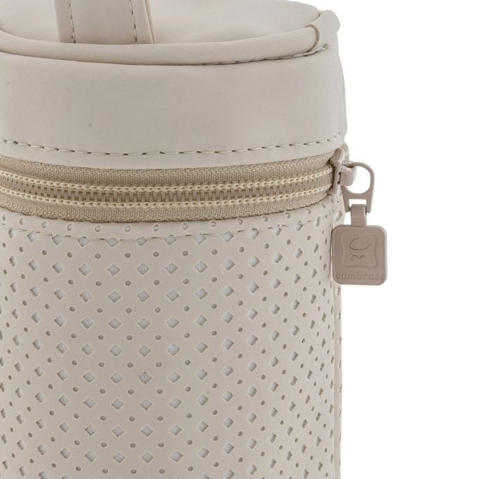El Portabiberón de Cambrass está diseñado para guardar el biberón del bebé y poder transportarlo cómodamente. La parte interior permite mantener la temperatura del líquido que contiene el biberón (leche, zumo, agua). Por su tamaño es fácil de transportar dentro del bolso, aunque el clip que incorpora su asa superior también permite colgarlo en el carro. Además, el porta biberón cuenta con cierre con cremallera YKK de alta calidad cuyo cursor está identificado con el logo de Cambrass.