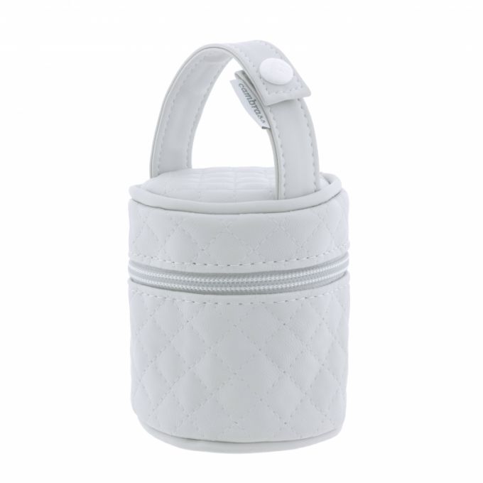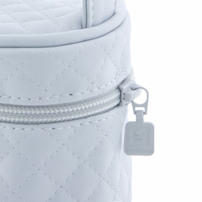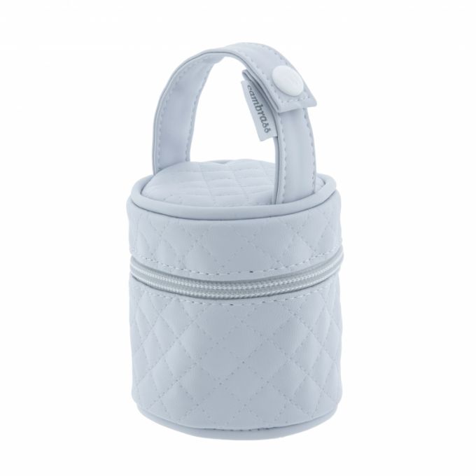 El Portachupete de Cambrass está diseñado para guardar los chupetes o biberones pequeños (anchos de 180 cl.) del bebé y transportarlos de forma cómoda e higiénica. Por su tamaño es fácil de transportar dentro del bolso, aunque el clip que incorpora su asa superior también permite colgarlo en el carro. Además, el porta chupete cuenta con cierre con cremallera YKK de alta calidad cuyo cursor está identificado con el logo de Cambrass.
