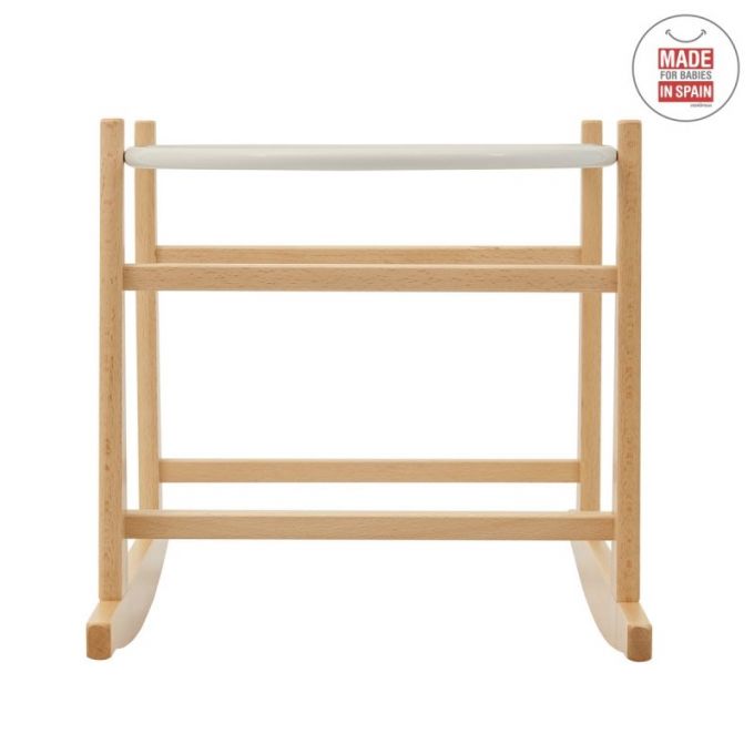 Está fabricado en madera natural, su altura permite la visibilidad del bebé por parte del adulto en todo momento o bien desde la cama. Tiene función de Balancín para facilitar el sueño de los bebés.