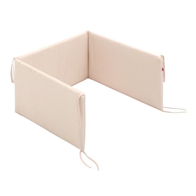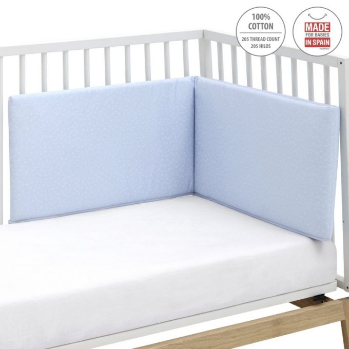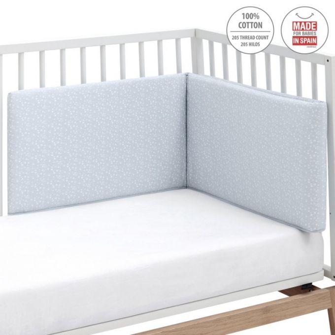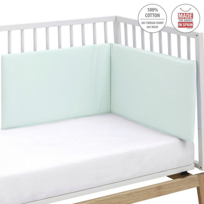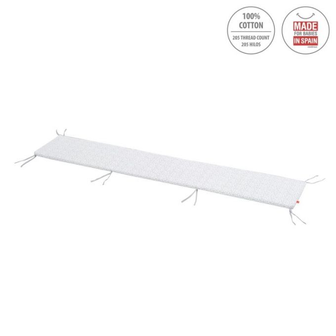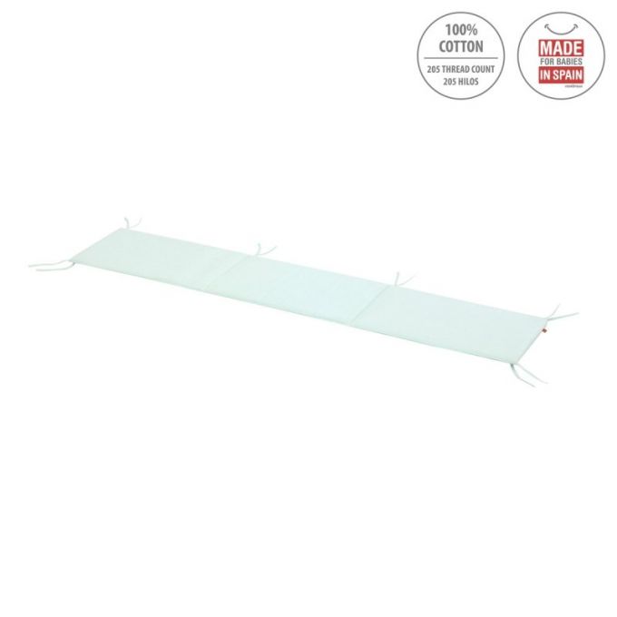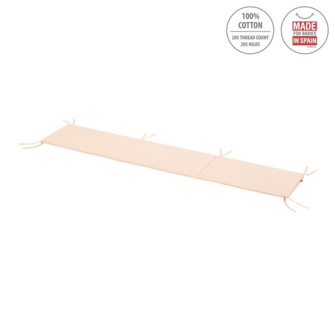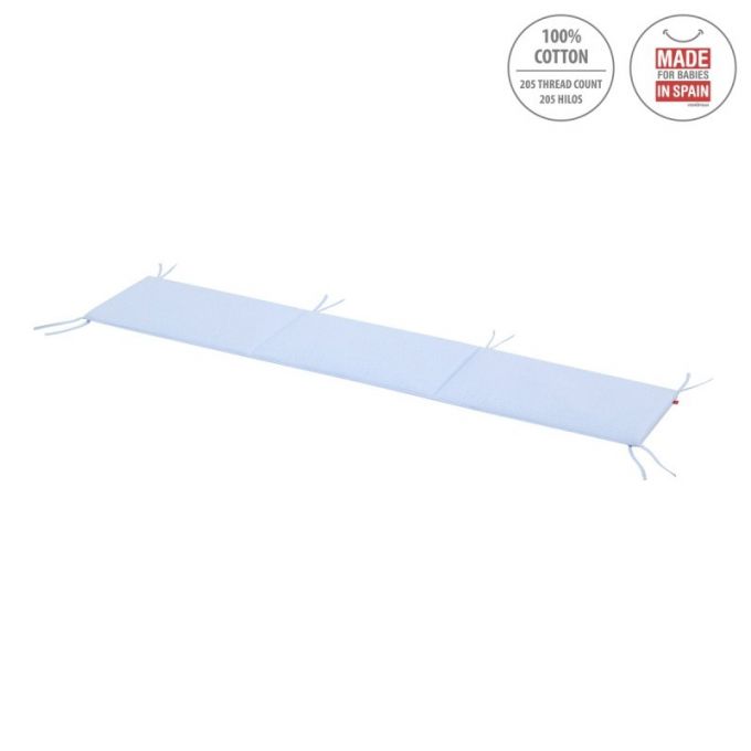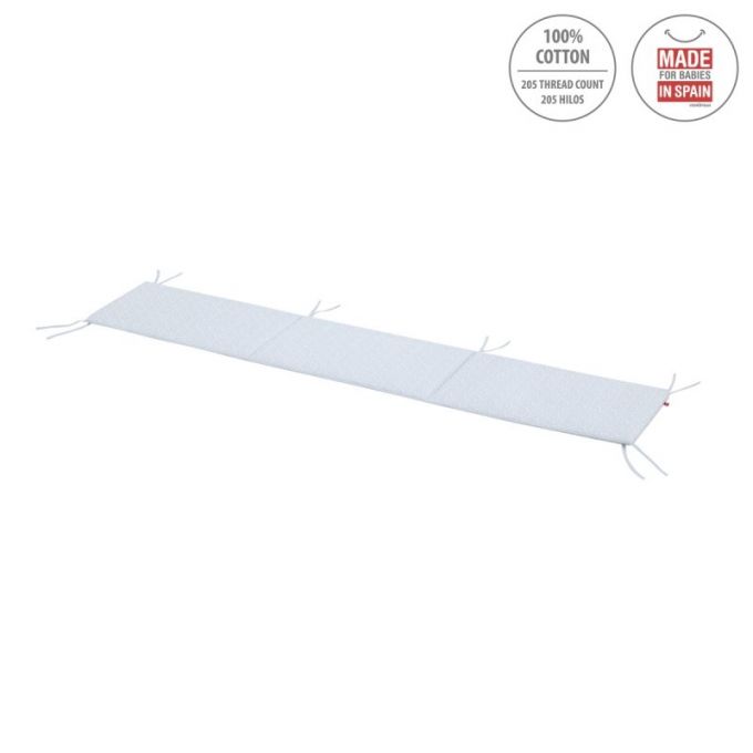 El Protector cuna acolchado de Be, disponible para cunas de 60 x 120 cm., protege las barandillas de la cuna evitando posibles golpes del bebé gracias a su relleno a base de fibra hueca que garantiza un efecto amortiguador. Incorpora ocho puntos de ajuste que permiten fijarlo a la cuna de forma segura. Además está disponible en todos los textiles de la colección Be lo que permite coordinarlo con el resto de elementos decorativos de la habitación.