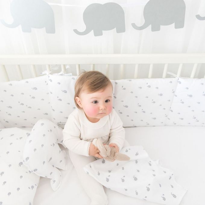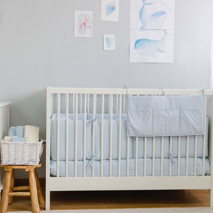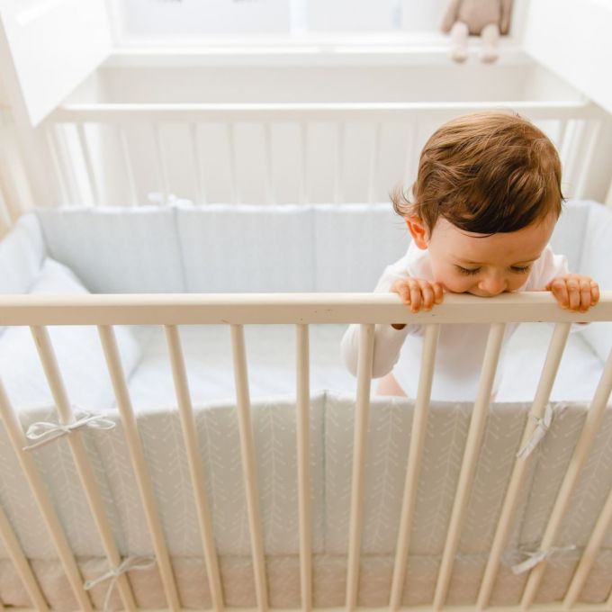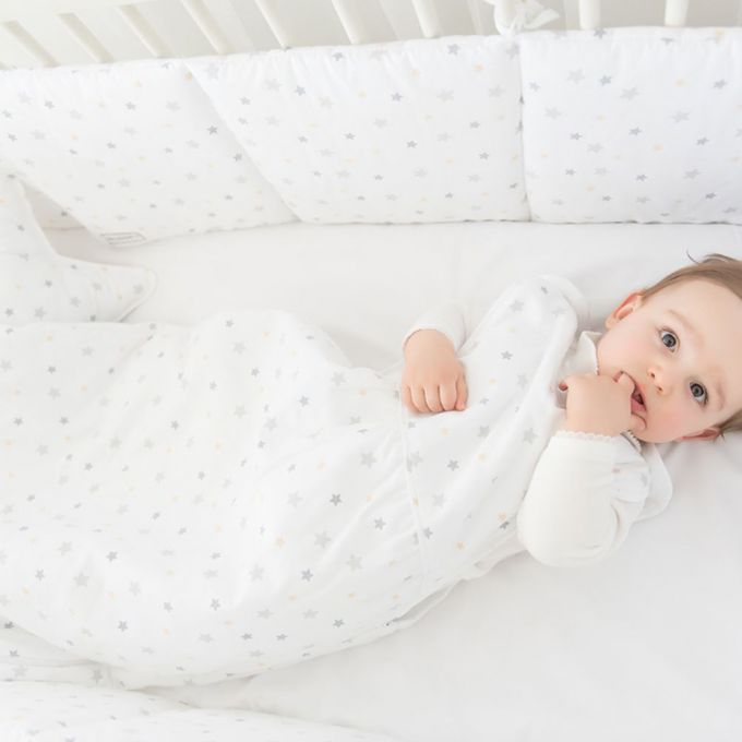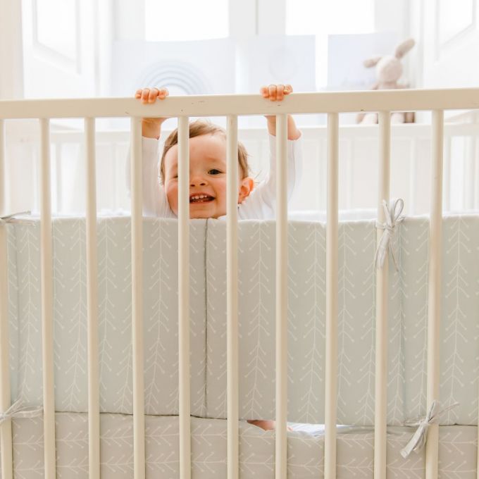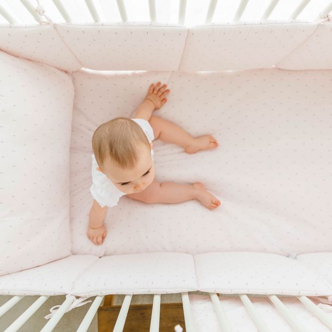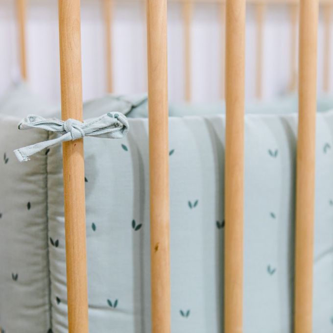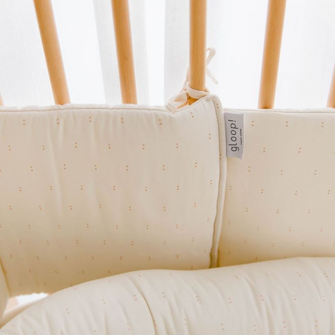 El Protector de Cuna completo gloop! protege todo alrededor de la cama. Pone a su bebé a dormir con seguridad al protegerlo.