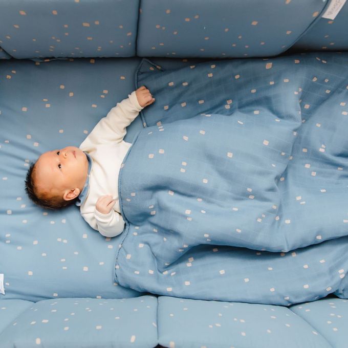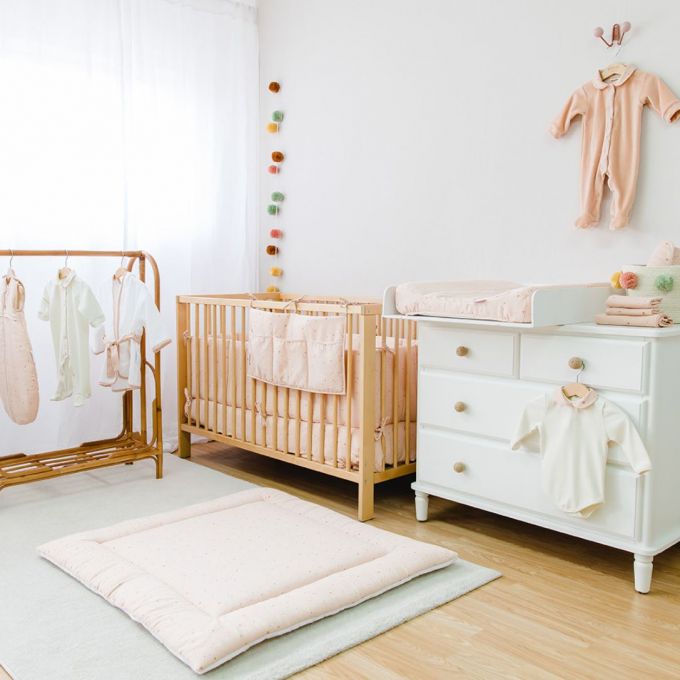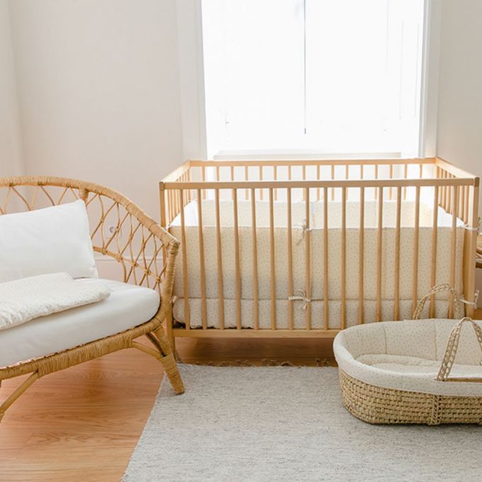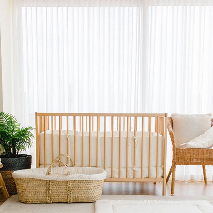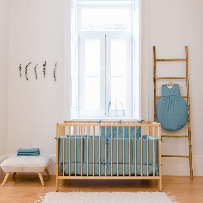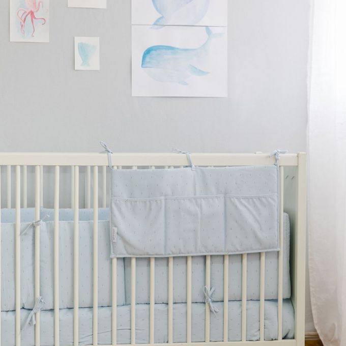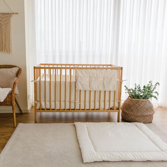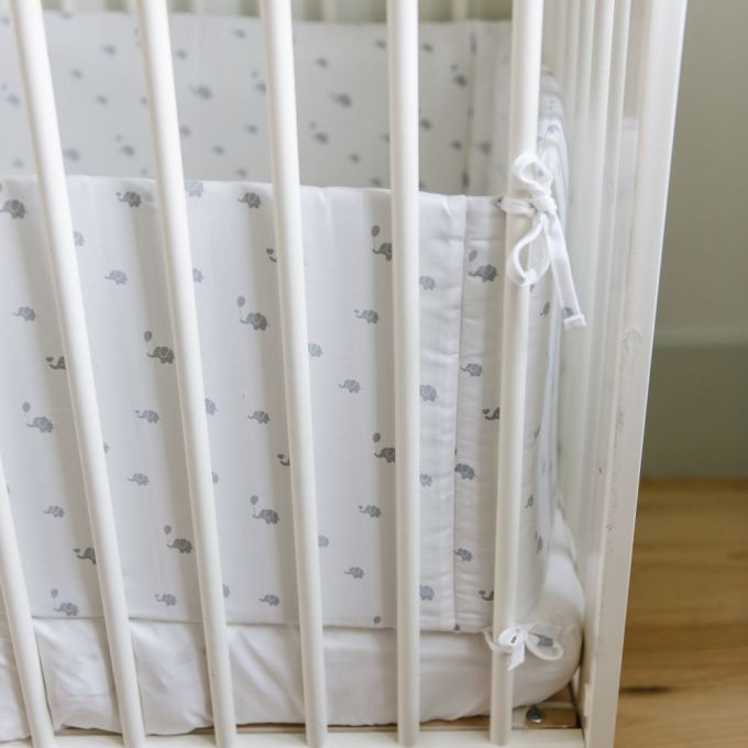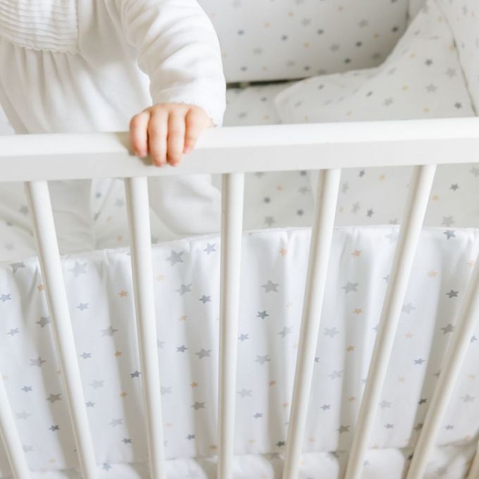 El Protector de Cuna completo gloop! protege todo alrededor de la cama. Pone a su bebé a dormir con seguridad al protegerlo.