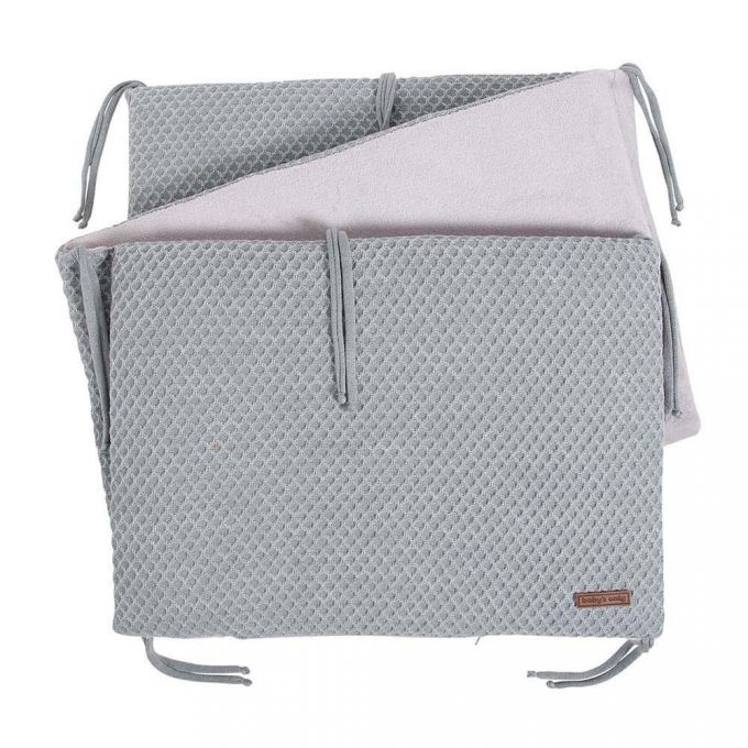 Se utiliza como almohadilla o protector para la cabeza y también como elemento decorativo. Lo colocas en la cabecera de una cuna o cuna. El parachoques de cuna tiene un tamaño de 180 x 40 cm y es adecuado para cunas de 60 y 70 cm de ancho. El parachoques de la cama se puede utilizar en ambos lados.