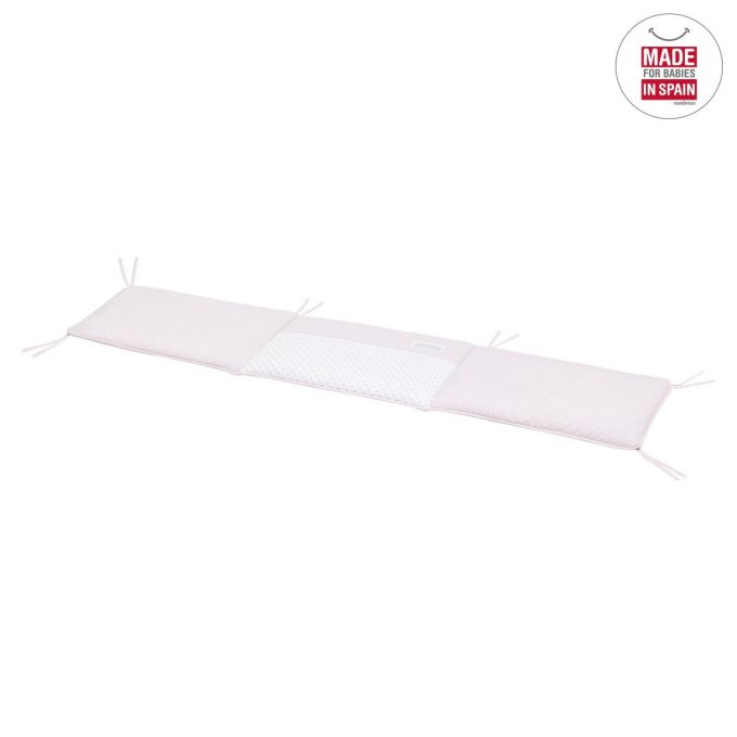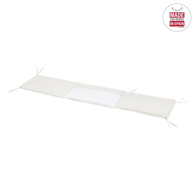 El Protector cuna acolchado de Cambrass, disponible para cunas de 60 x 120 cm., protege las barandillas de la cuna evitando posibles golpes del bebé gracias a su relleno a base de fibra hueca que garantiza un efecto amortiguador. Incorpora ocho puntos de ajuste que permiten fijarlo a la cuna de forma segura. Además está disponible en todos los textiles de la colección Cambrass lo que permite coordinarlo con el resto de elementos decorativos de la habitación.