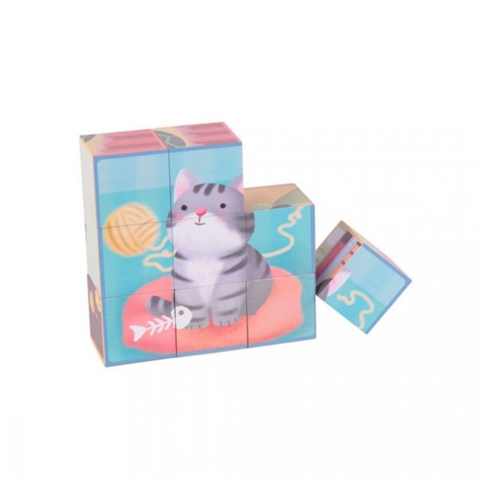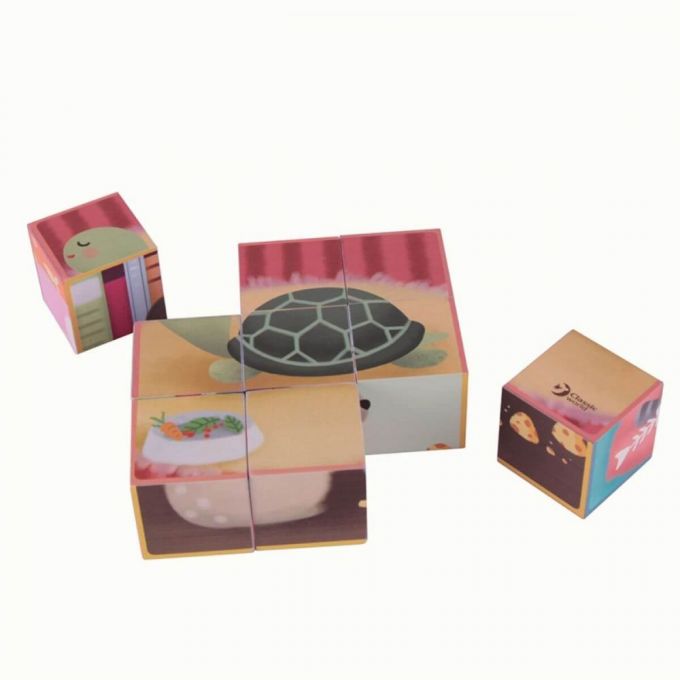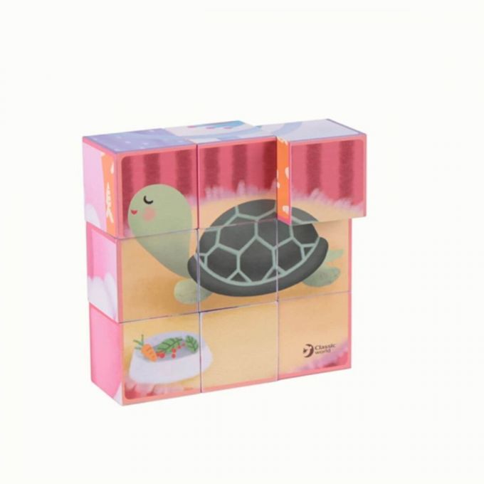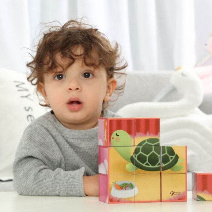 El puzzle de bloques animalitos son 9 bloques con bonitos dibujos los cuales juntándolos crearán una hermosa imagen de animales como un gato o una tortuga. Fomenta la coordinación ojo - mano.
