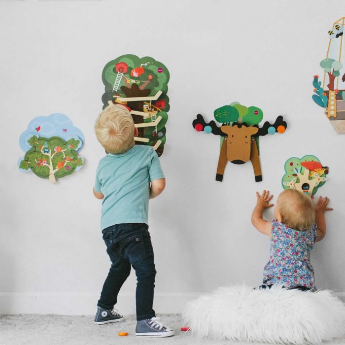 Puzzle vertical que se adhiere a la pared. Junta las piezas hasta formar la casita donde vive el Sr. Squirel. Ayuda al desarrollo la concentración y la motricidad fina de los pequeños