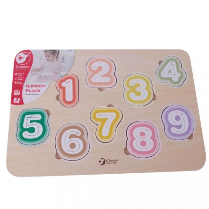 Puzzle números es un bonito puzzle con el que tu hij@ aprenderá a encajar los distints números según su forma y los relacionará con el dibujo que aparece. Cada número incluye el trazo para que aprenda a escribirlos poco a poco. Juguete educativo y divertido.