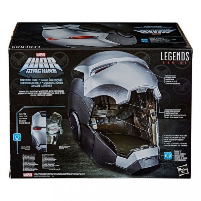 El casco necesita 3 pilas AAA para funcionar (no incluidas) y proporciona efectos de sonido además de iluminación en los dos ojos con potentes luces LED. La parte frontal del casco se puede retirar al funcionar con imanes.