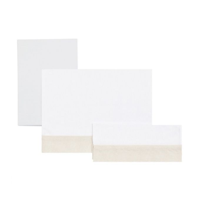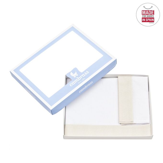 La sábana cuna 3 piezas pará cuna de 60 x 120 cm. de Cambrass es de algodón egipcio 100% lo que le aporta un tacto suave. El set está compuesto de sábana encimera, sábana bajera y funda para almohada.