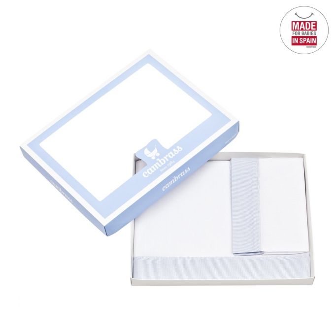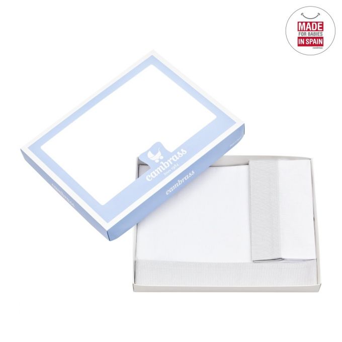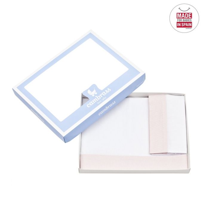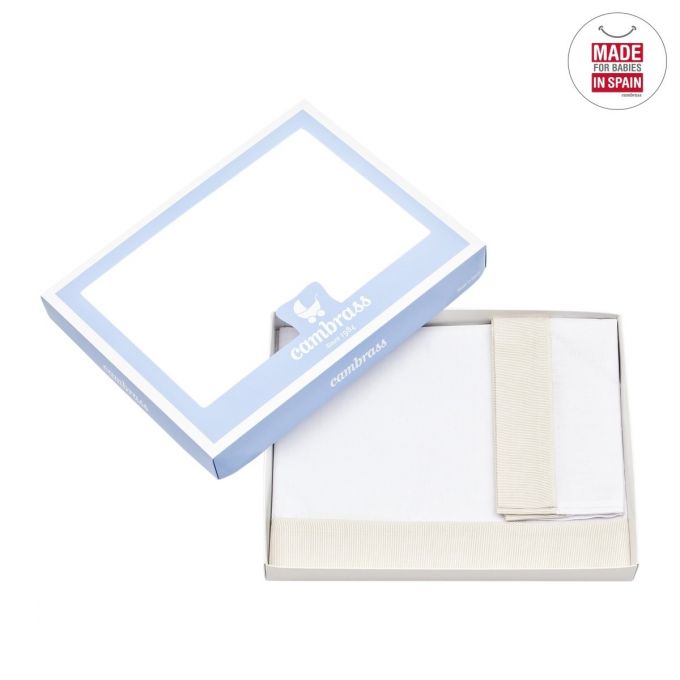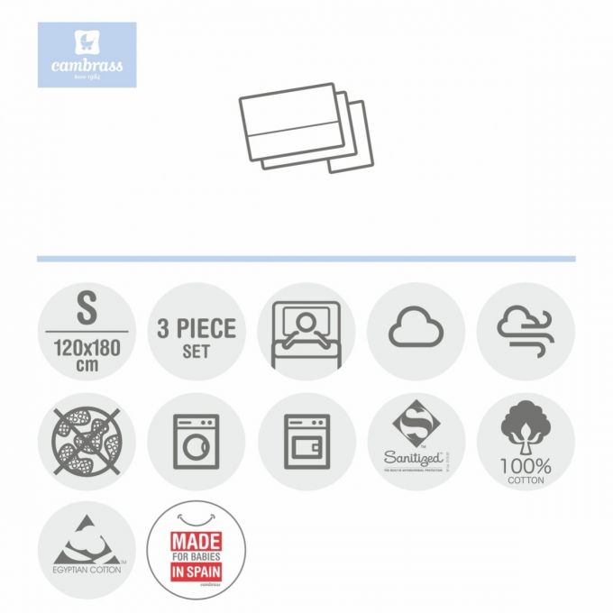 La sábana cuna 3 piezas para cuna de 70 x 140 cm. de Cambrass es de algodón egipcio 100% lo que le aporta un tacto suave. El set está compuesto de sábana encimera, sábana bajera y funda para almohada.