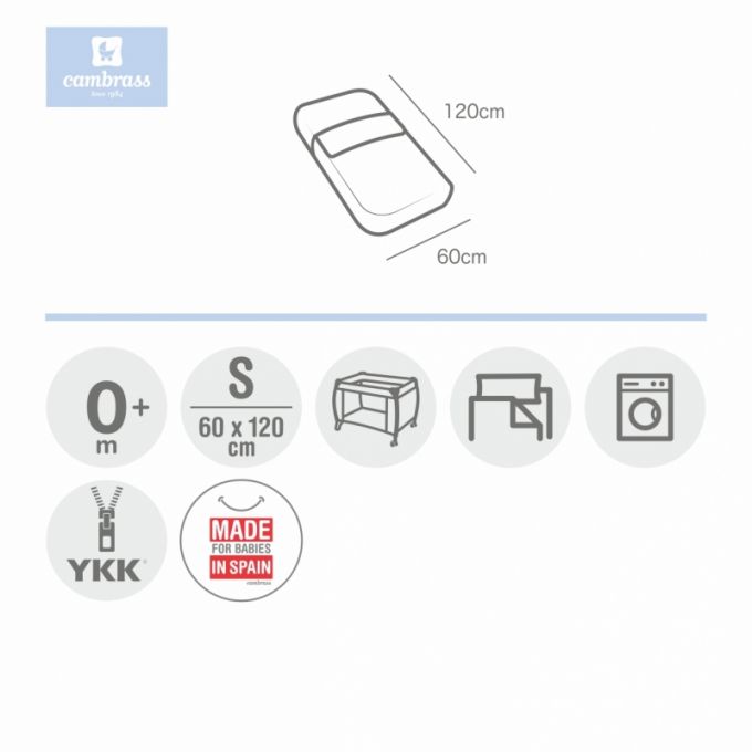 Además el saco cuenta con dos características que lo hacen especialmente práctico: el sencillo sistema de cierre mediante doble cremallera y la zona elástica del contorno inferior que sirve para ajustarlo al colchón. Es un artículo muy utilizado en guarderías y en segundas viviendas ya que con un único artículo se viste toda la cuna. Fabricado en España por Cambrass.