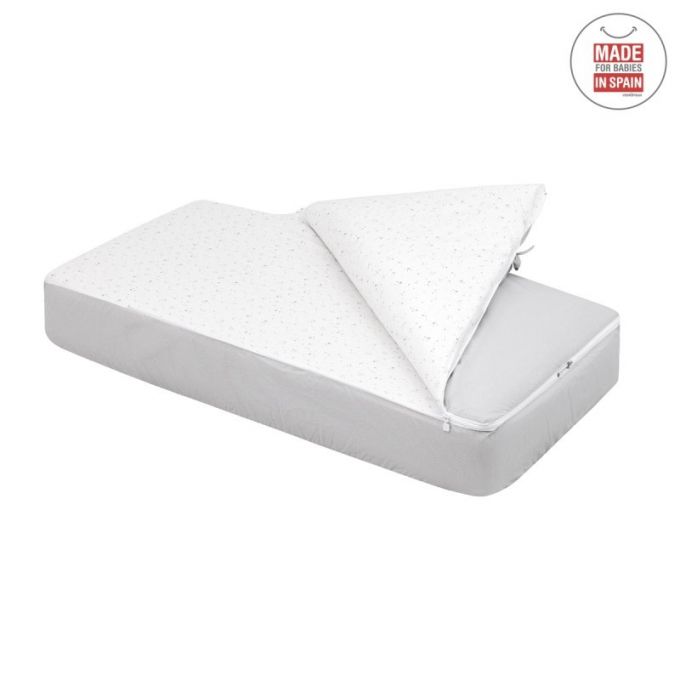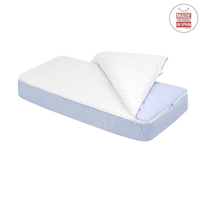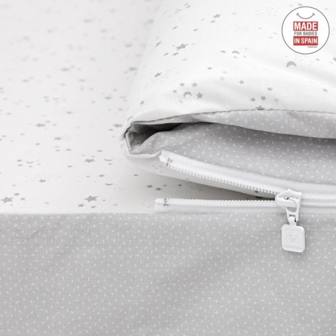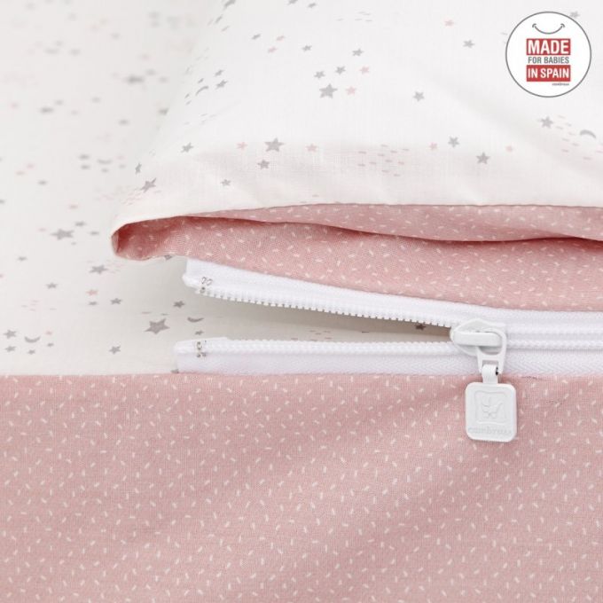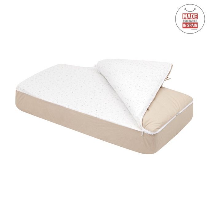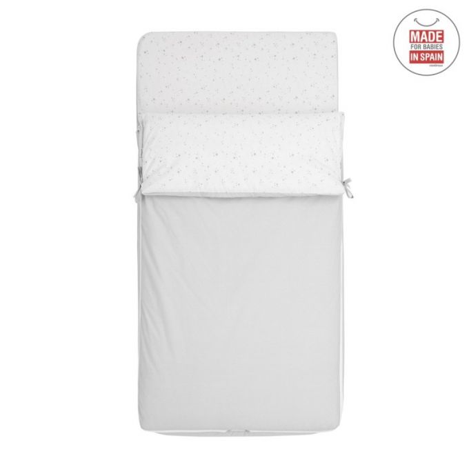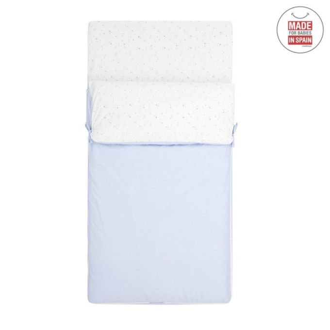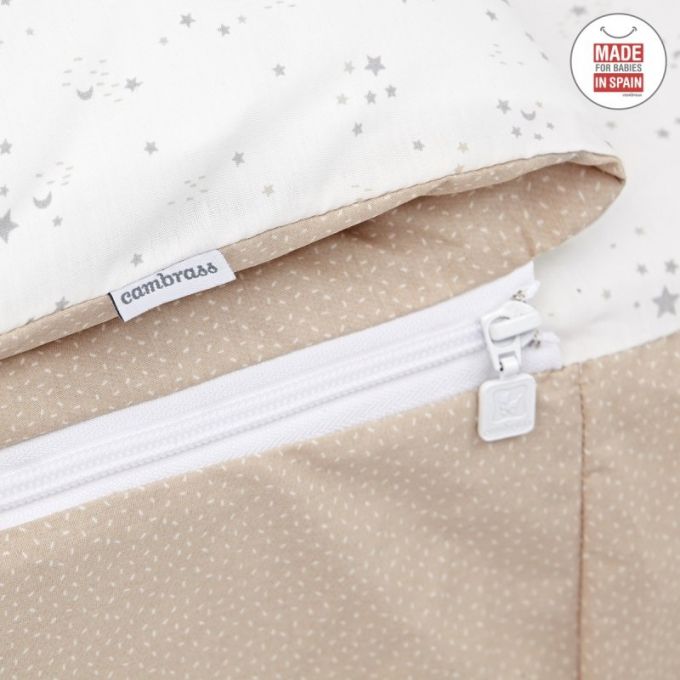 Además el saco cuenta con dos características que lo hacen especialmente práctico: el sencillo sistema de cierre mediante doble cremallera y la zona elástica del contorno inferior que sirve para ajustarlo al colchón. Es un artículo muy utilizado en guarderías y en segundas viviendas ya que con un único artículo se viste toda la cuna. Fabricado en España por Cambrass.