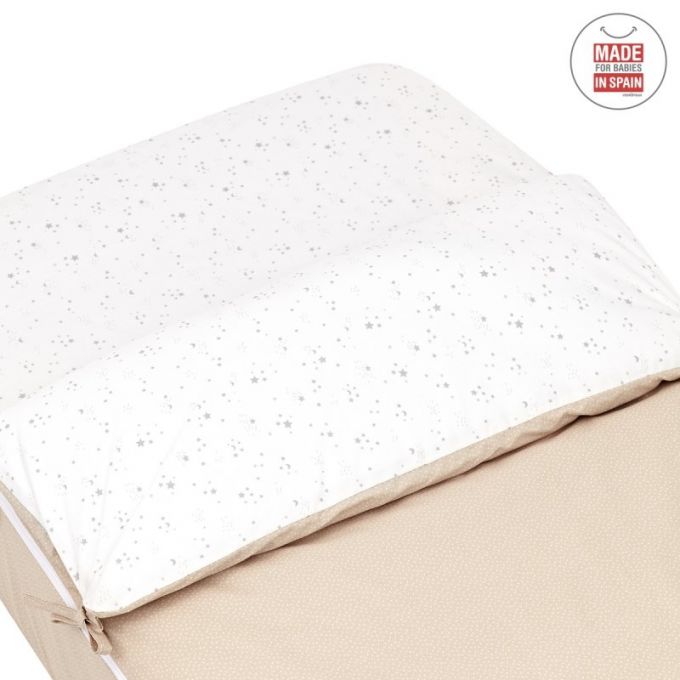 El saco cuna invierno y verano sirve para cunas de 60 x 120 cm. Como vestidura para la cuna, protege al bebé del frío como lo haría una colcha, una manta o una funda nórdica y generalmente se utiliza en las cunas de camping o de viaje. Además aporta un alto componente estético ya que la funda está disponible en todos los tejidos de la colección de Cambrass y se puede coordinar con el resto de la decoración de la habitación del bebé. También incorpora el relleno desenfundable, lo que facilita su lavado y permite el uso del saco tanto en invierno como en verano.