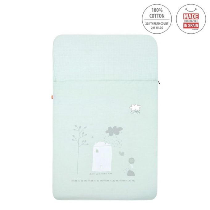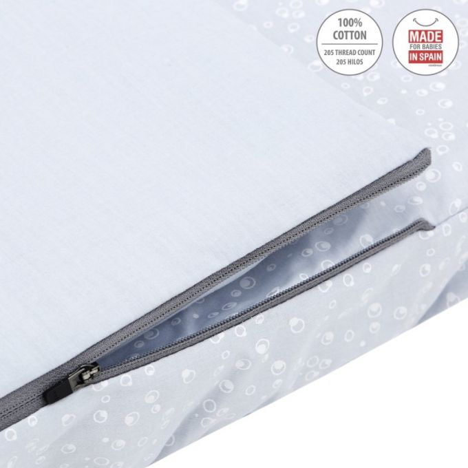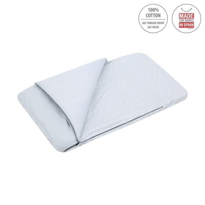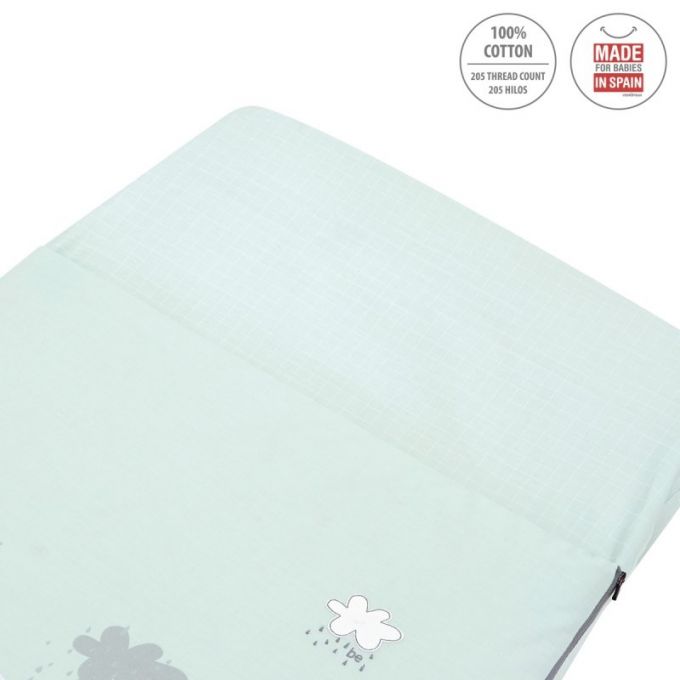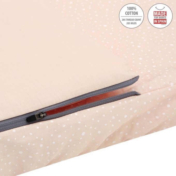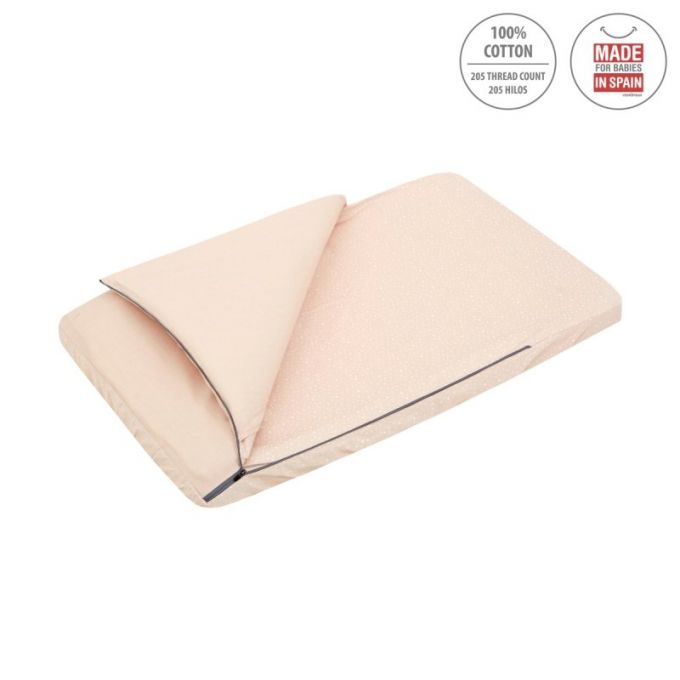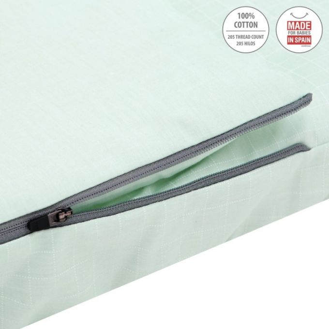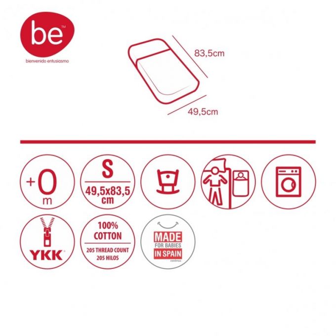 El saco de minicuna de Be, es perfecto para todas las minicunas del mercado, tanto Colecho como minicunas tradicionales, Aspa, Next. Lleva cremallera YKK, para poder abrir y cerrar el saco. La parte superior es desenfundable, pudiendo quitar el relleno, así poder facilitar el lavado y una perfecta adaptación a la temperatura dependiendo de la estación del año. La parte inferior del saco está acabado con gomas para adaptarse perfectamente a cualquier tipo de colchón. Este artículo es perfecto para que él bebé no se destape.