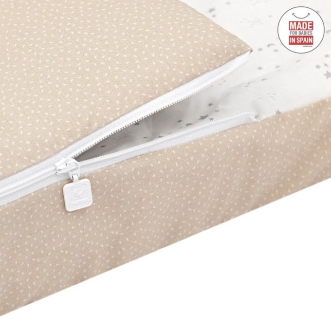 El saco de minicuna de Be, es perfecto para todas las minicunas del mercado, tanto Colecho como minicunas tradicionales, Aspa, Next. Lleva cremallera YKK, para poder abrir y cerrar el saco. La parte superior es desenfundable, pudiendo quitar el relleno, así poder facilitar el lavado y una perfecta adaptación a la temperatura dependiendo de la estación del año. La parte inferior del saco está acabado con gomas para adaptarse perfectamente a cualquier tipo de colchón. Este artículo es perfecto para que él bebé no se destape.