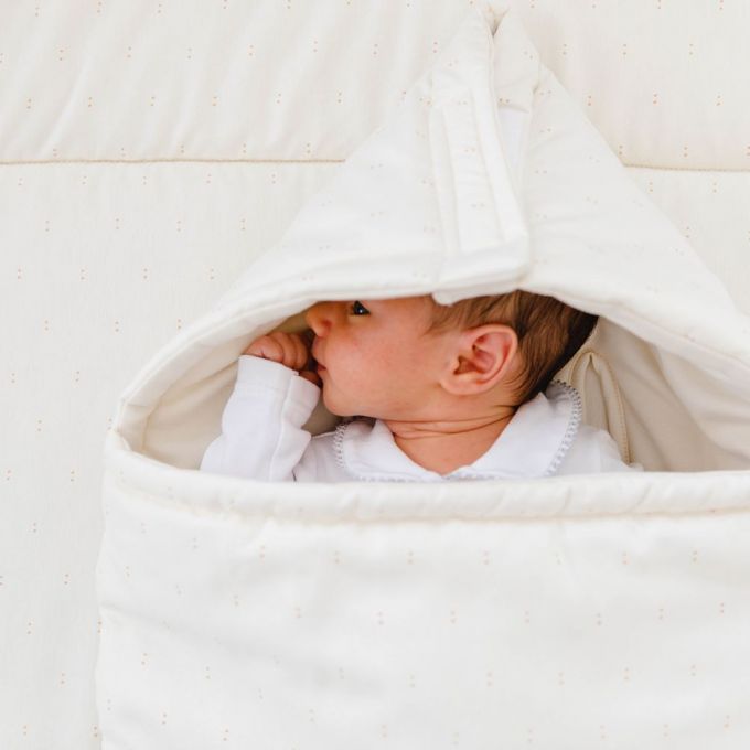 Cálido y cómodo. Nuestro bolso de viaje permite un sueño tranquilo y acogedor para el bebé. Fácil y práctico de usar en el capazo, la cama o incluso en la cuna, con las aberturas en la parte posterior para colocar los cinturones.