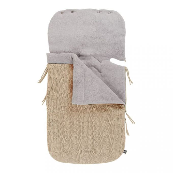 El patrón de cable en el tejido le da a su asiento de automóvil un atractivo clásico pero moderno. Si hace más frío afuera, puede convertir la parte superior en una especie de capucha para mayor calidez y protección. El interior y la espalda tienen un forro suave. Esto asegura que todos los niños se sientan cómodos y cálidos en el asiento del automóvil. La parte delantera del manguito se puede cerrar completamente con la cremallera. El manguito es adecuado para sillas de coche del grupo 0, para niños de 0 a 13 kg o hasta +/- 12 meses. Adecuado para un sistema de cinturón de seguridad de 5 puntos y 3 puntos.
