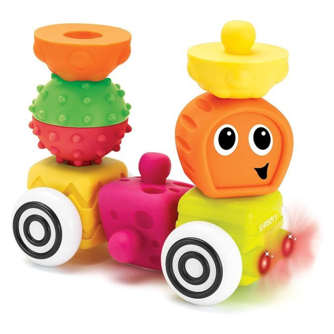 12 piezas coloridas de plástico blando con diferentes texturas agradables de manipular, encajar y desencajar.