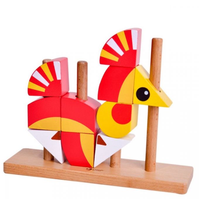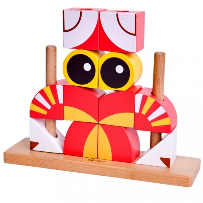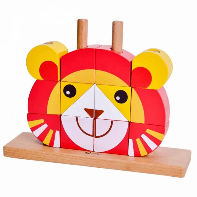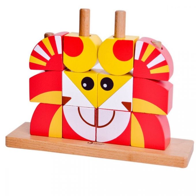 Set de bloques león es un juguete de bloques que puede montarse de distintas maneras para crear varios diseños e imágenes, entre ellas la cara de un león. Contiene 12 piezas de bloques, una base de madera con 4 tacos que permiten separar y reconectar los bloques y 5 tarjetas de instrucciones que proponen distintas formas creativas de montar los bloques. Fomenta la coordinación ojo-mano de l@s niñ@s y mejora sus habilidades para resolver problemas.
