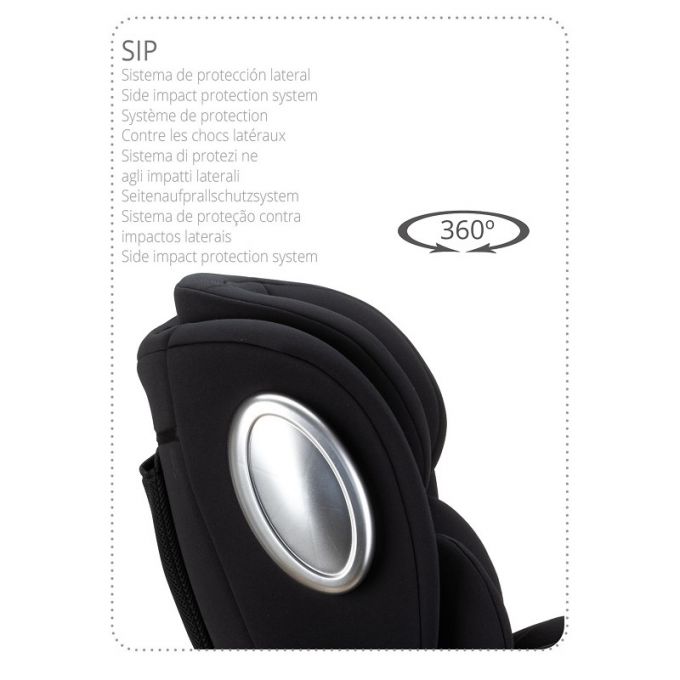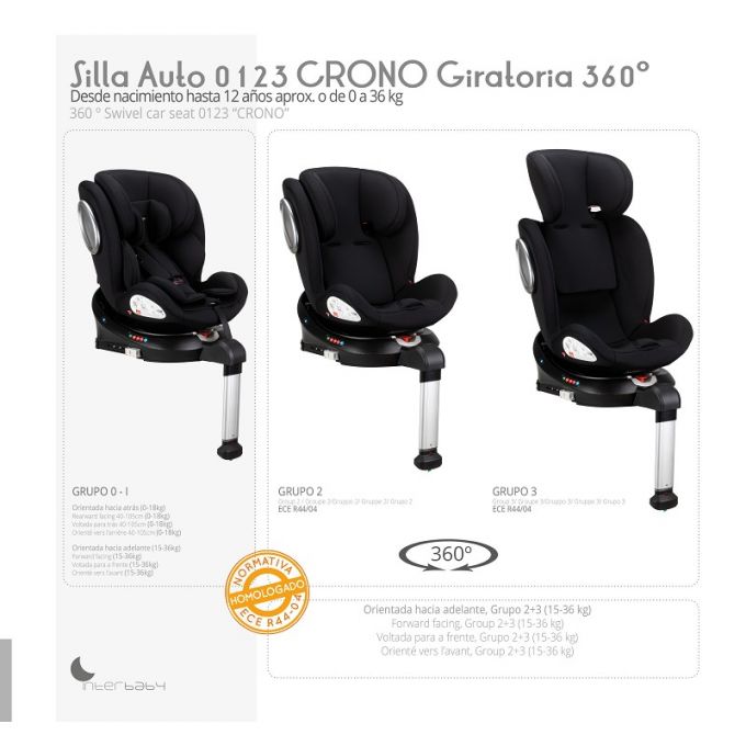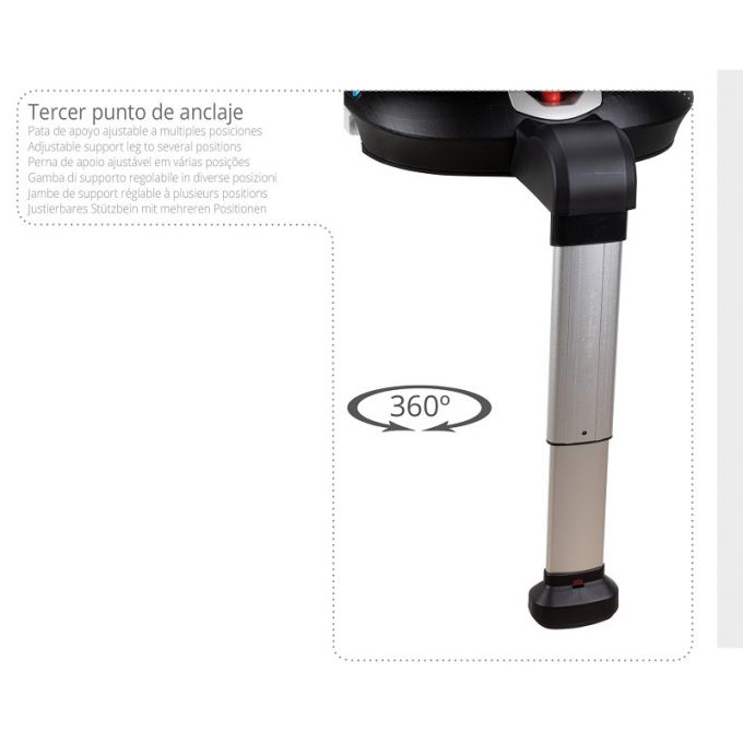 La silla Crono además incluye la pata de apoyo( tercer punto de anclaje ) y SIP ( sistema de protección lateral contra impactos).