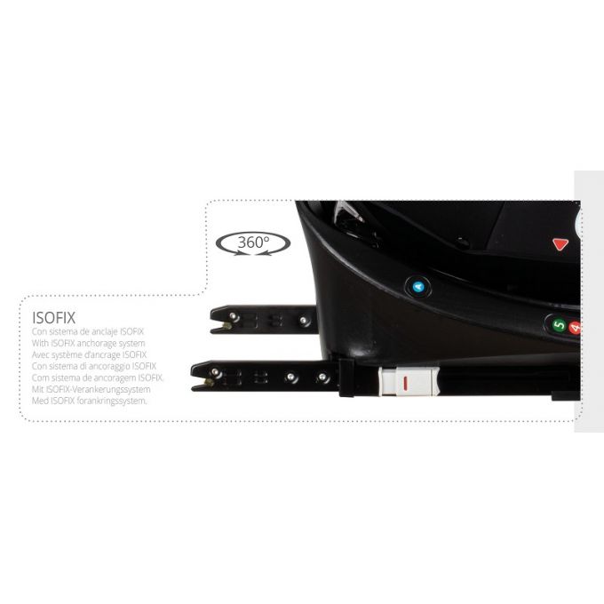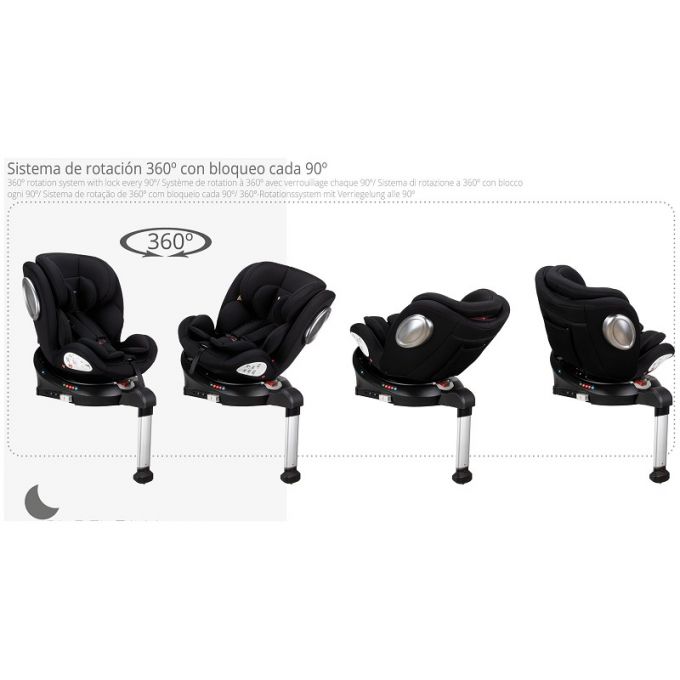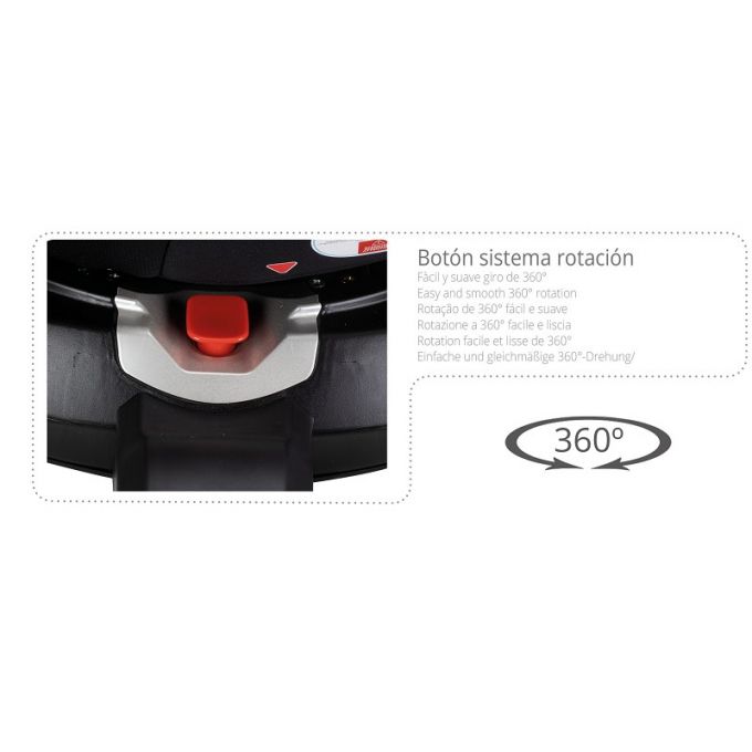 Al ser giratoria 360 º con bloqueo cada 90º ya no tendrás que introducirte en el coche para poner y asegurar a tu bebé, ya que podrás hacerlo cómodamente desde el exterior.