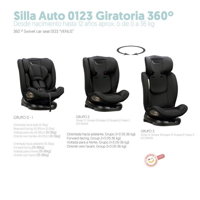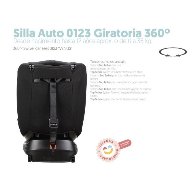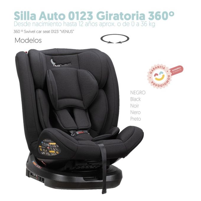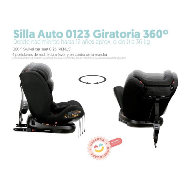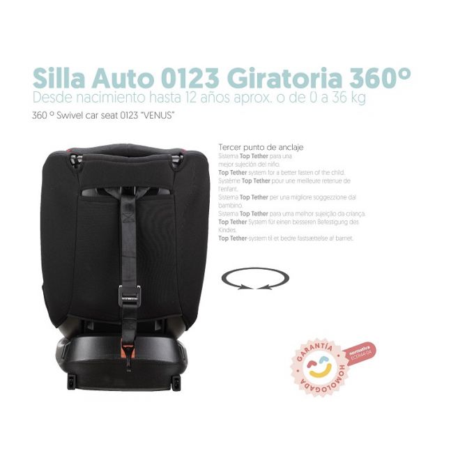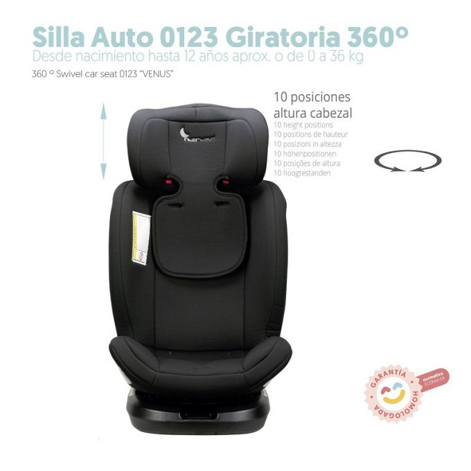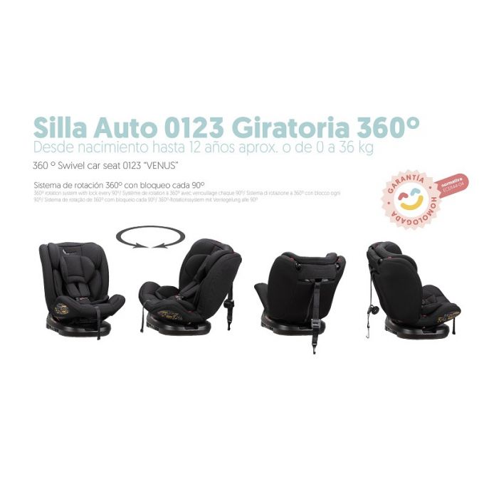 Silla de auto evolutiva grupos 0+/1/2/3 Negra Giratoria 360º.