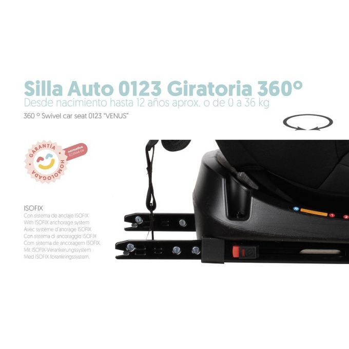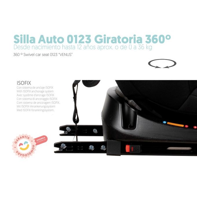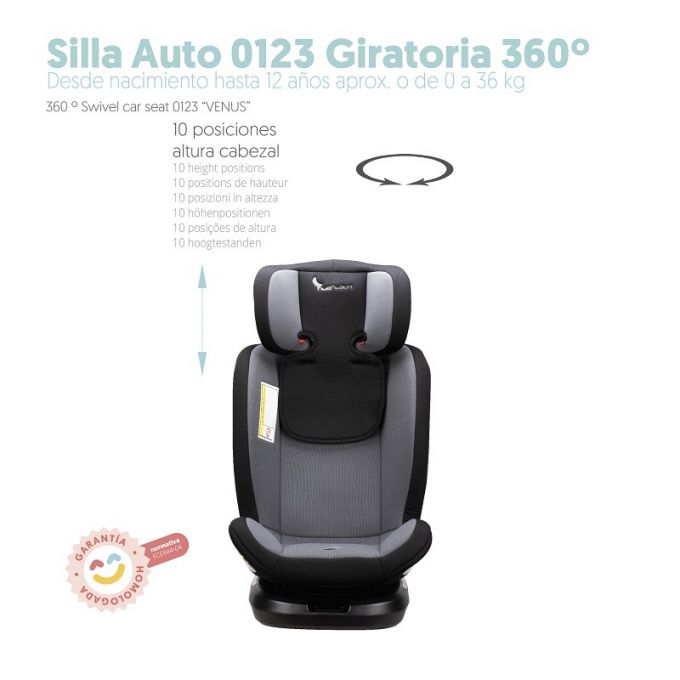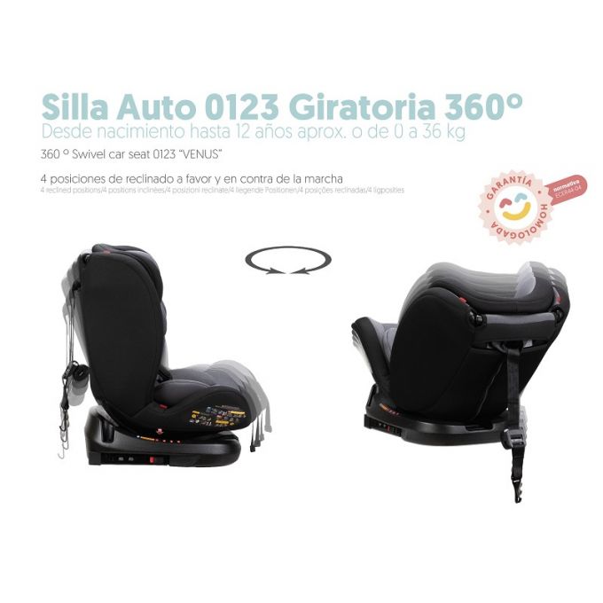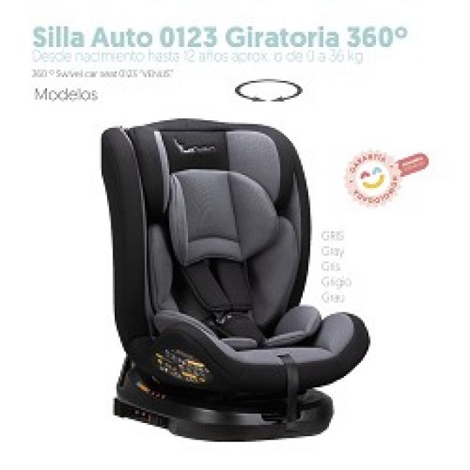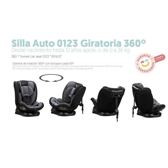 Silla de auto giratoria 360º Venus i-Size (40 - 105 cm.) para Grupo 0/1/2/3, en gris.