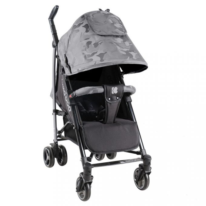 Sistema de arnés de 5 puntos con hombreras mélange y cubiertas inferiores con hebilla.