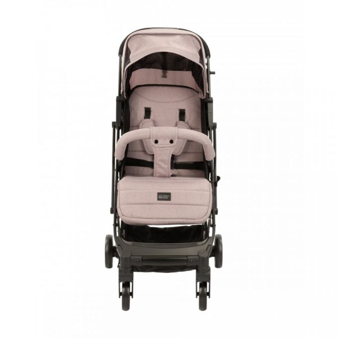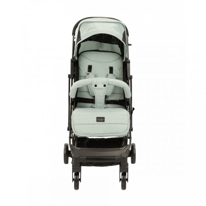 Sistema de arnés de 5 puntos con almohadillas para los hombros y cubiertas para las hebillas inferiores.