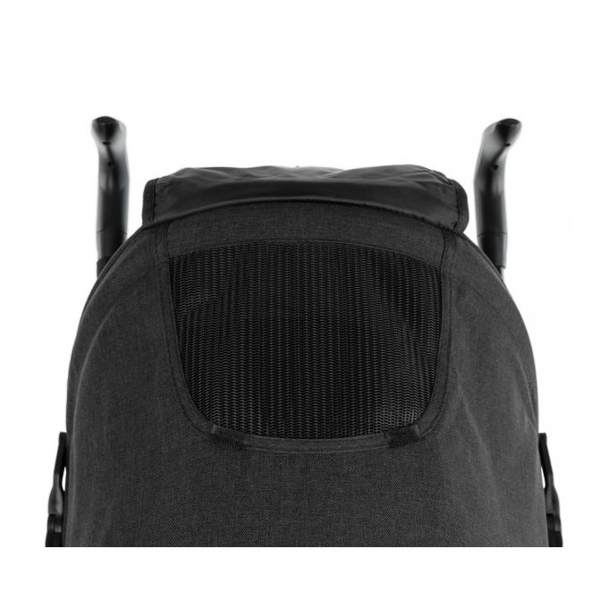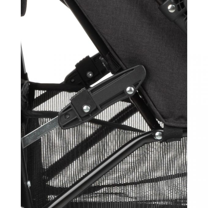 Sistema de arnés de 5 puntos con hombreras mélange y fundas para las hebillas inferiores.