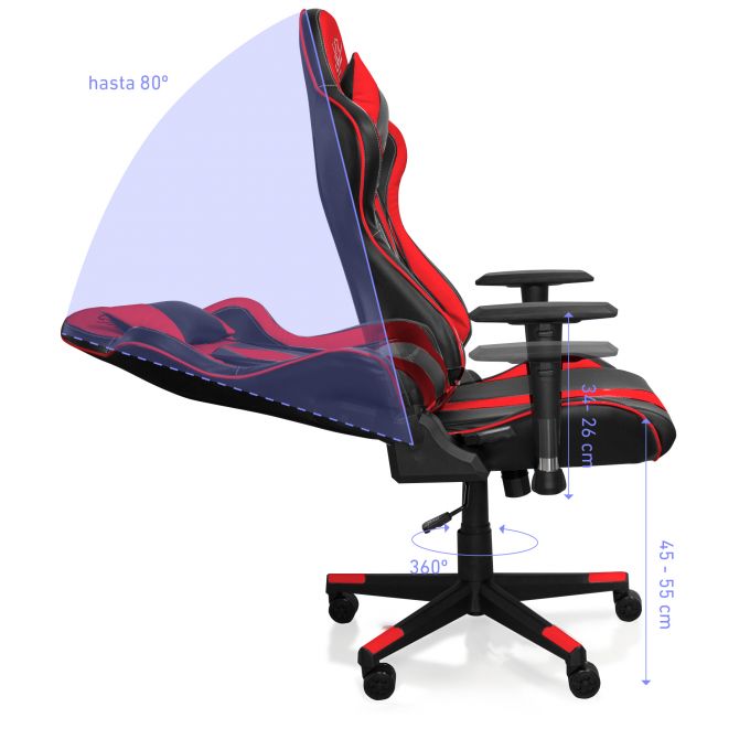 La ergonomía y el diseño unidos para hacer que tus horas de juego o trabajo no te pasen factura. Espalda y cuello acompañados de cojines ajustables en altura para adaptarse a tus necesidades. No dejes que tu rendimiento se vea afectado en ningún ámbito.