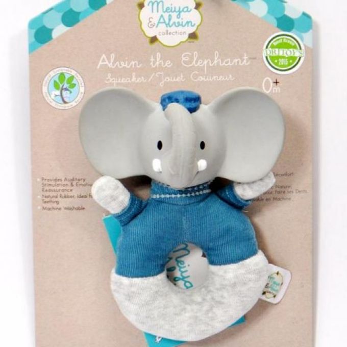 El simpático y suave elefante Alvin promueve la motricidad con el suave anillo sonajero y desarrolla la audición con tonos suaves.