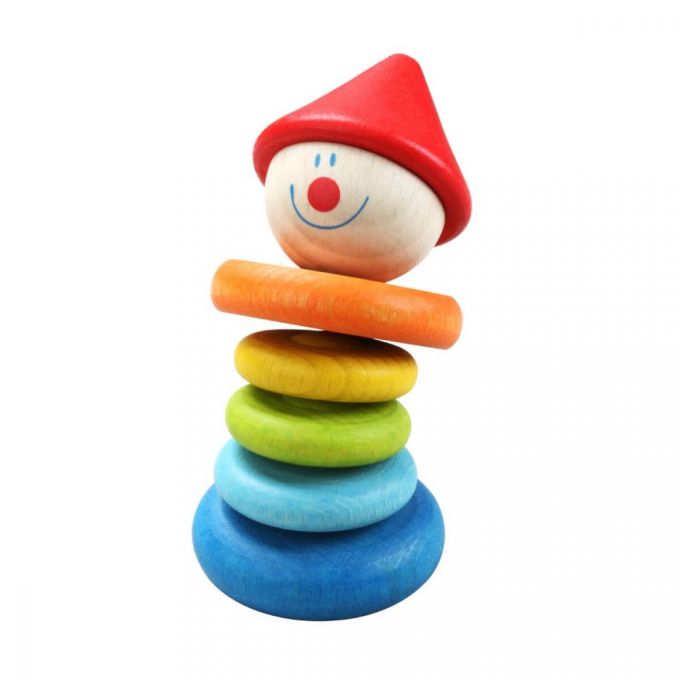 El sonajero payaso tiene el tamaño perfecto para las manitas de tu bebé. ¡Tu hij@ disfrutará escuchando el sonido de los discos de madera al chocar mientras lo agita!